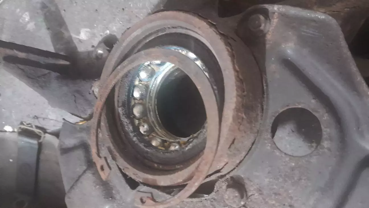 Можна розрізати болгаркою, але ж блекаут... потім витягаємо кільця з обох сторін і перепресовуємо підшипник.