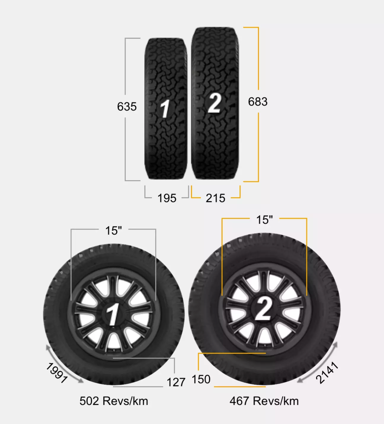 «Go hard or go home» - подумав я вирішив впихнути туди величезну 225/70-15. Втім спроби знайти щось без індексу «С» і з більш менш «легковими» індексами навантаження та швидкості виявилися марними. При тому я ще хотів класичний малюнок протектора і боковини. No way!