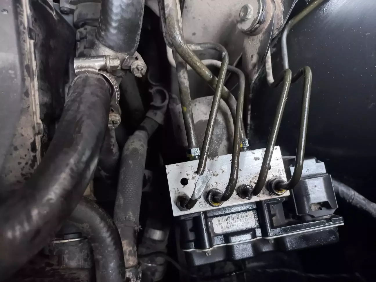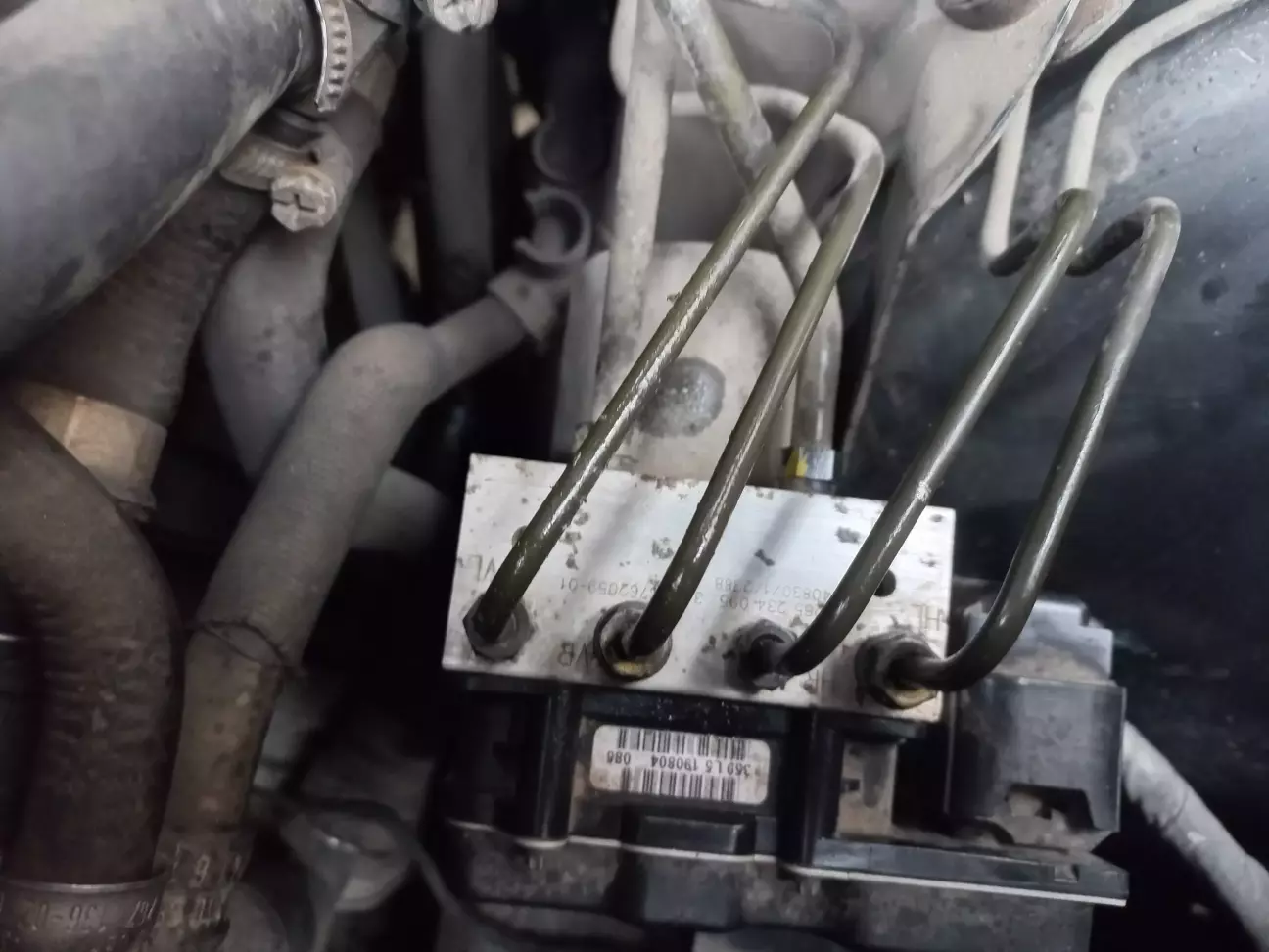 На блоці ABS трубки з різними штуцерами: