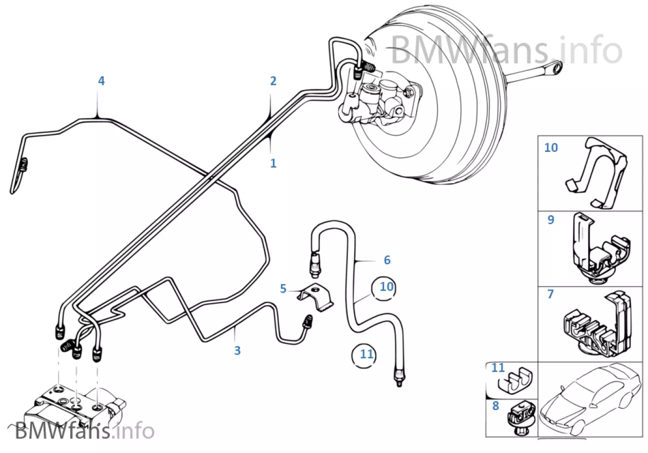 Деталь №6 - гальмівний шланг передній (34 30 1 166 118) - 2 шт. Я замовив аналог ATE (24516904803), які і йдуть в оригіналі.