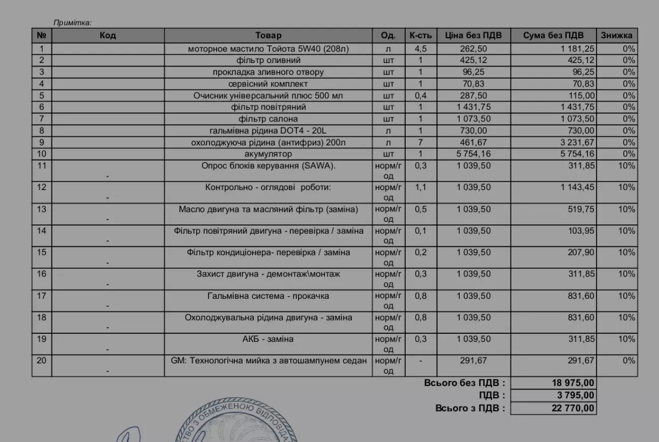 Витаю! Друзі. Час їде, летять кілометри, автівка відпрацьовує інвестовані при купівлі кошти. Чергове ТО з заміною рідин та акумуляторної батареї. Все на ОД та тільки оригінальні запчастини. ОД після кожного ТО пролонгує гарантію.