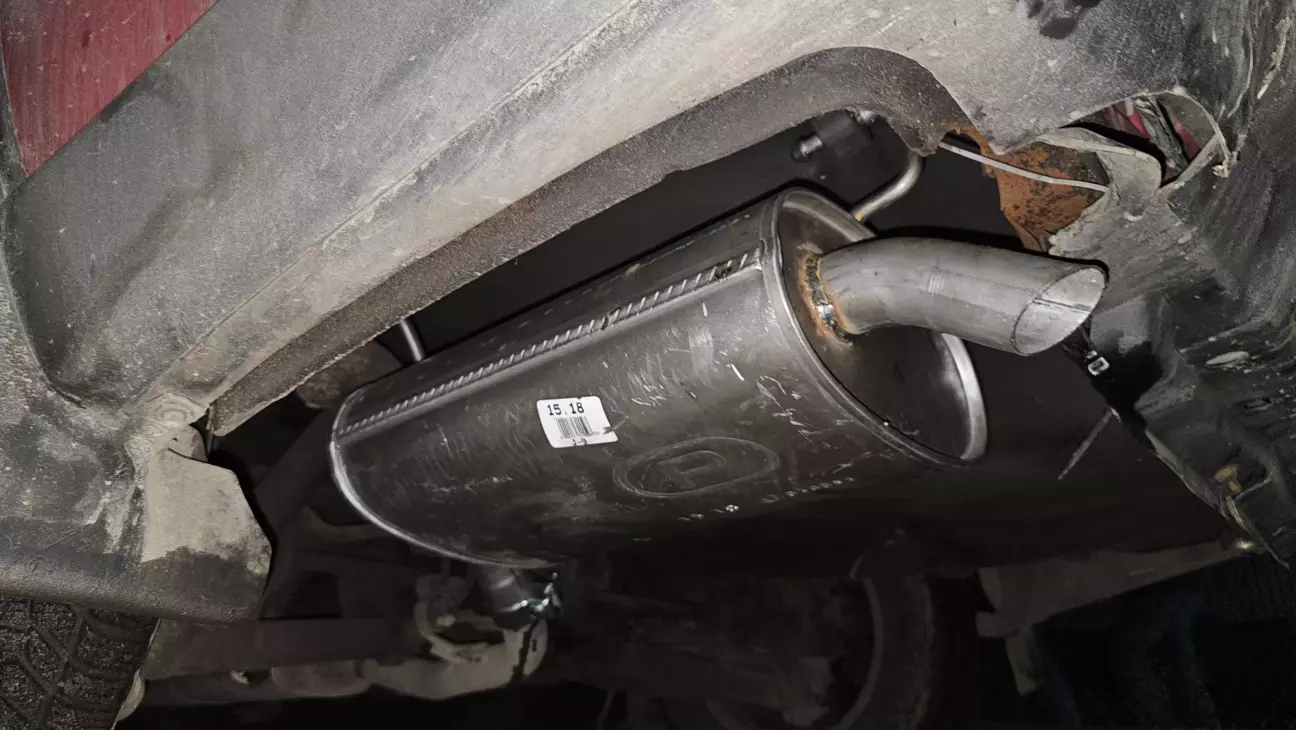 Прогнивший наскрізь і вихлопна труба, що виходить назовні з банки, просто бовталась і вже ні за що не трималась.