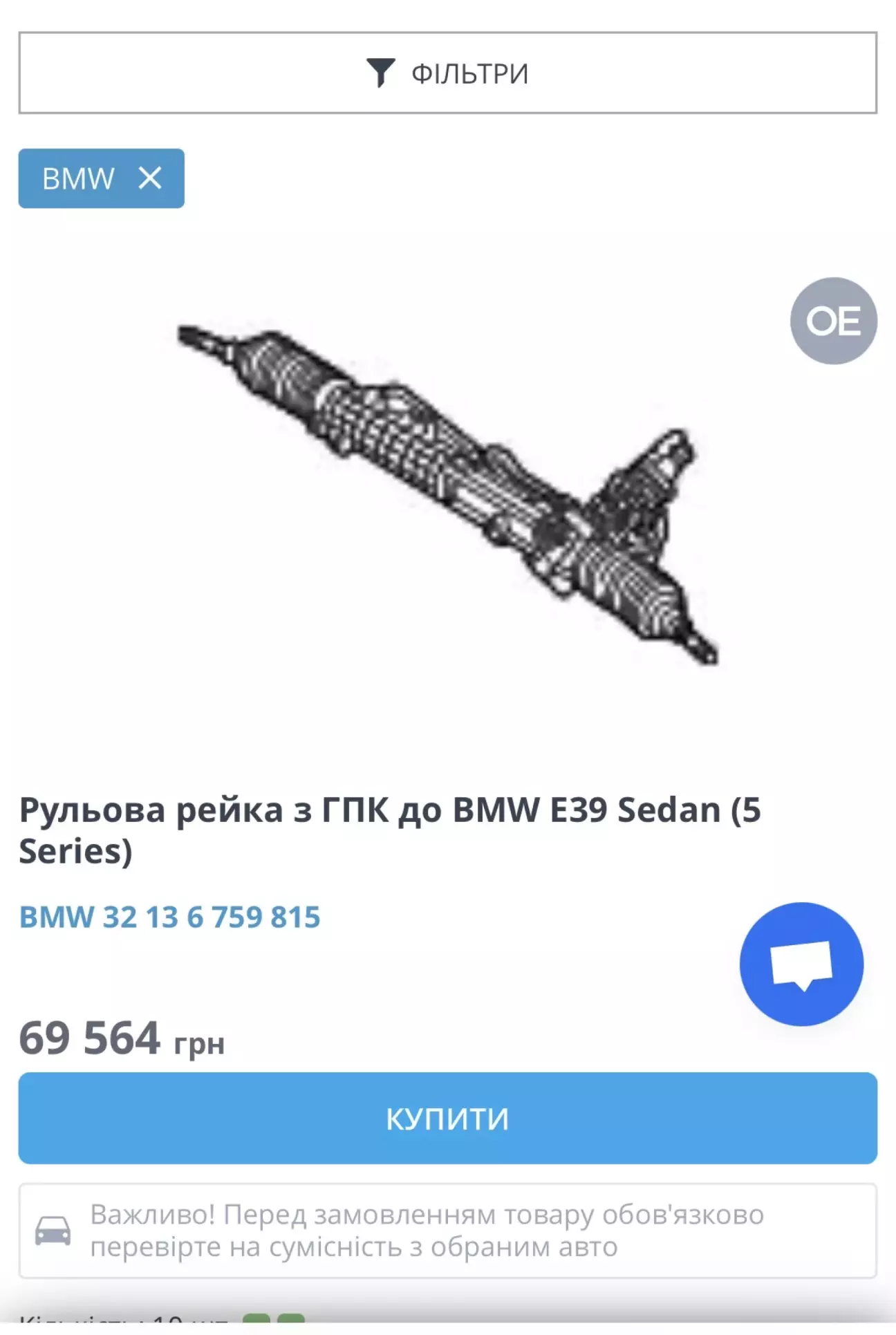 Ну що ж… підійшла черга до рульової рейки. При купівлі авто я ще помітив незначні підтікання, а з недавніх пір, бачу, що на підлозі в гаражі зʼявилися сліди від рідини ГУР. Тут або ремонт своєї оригінальної рейки або купівля нової. Відгуки про аналоги мені не сподобалися, а нова оригінальна рейка BMW коштує 70 000 грн.