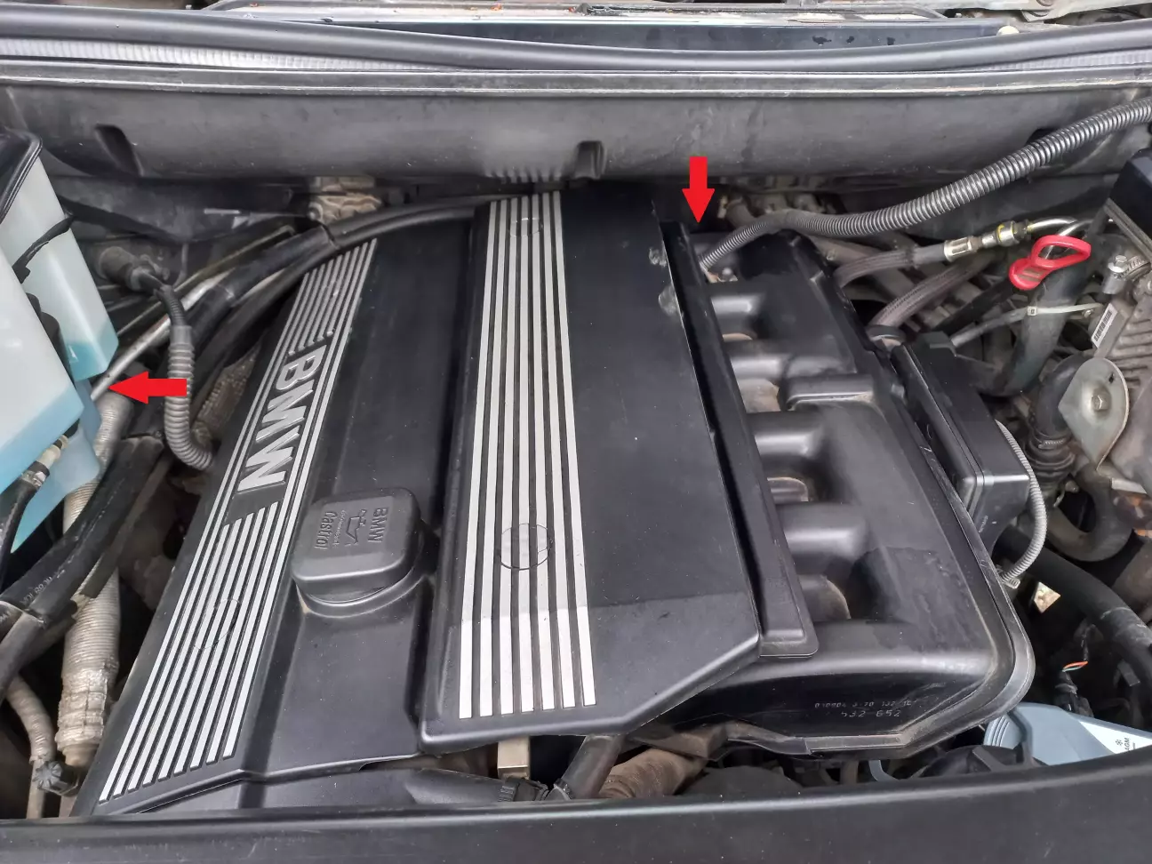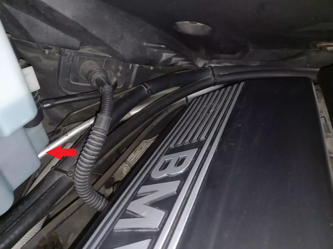 По схемі ЕТК права передня трубка фіксується разом з лівою трубкою одним пластиковим кронштейном №7 (34 30 1 164 313) на лівому лонжероніі, і далі йде по моторному щиту.