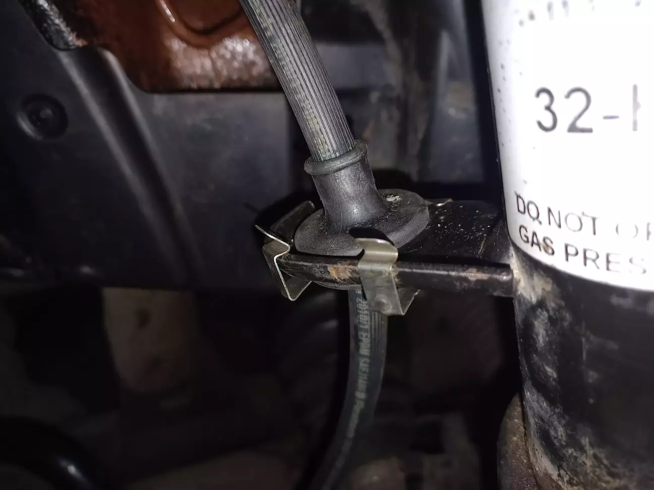Одна кліпса знаходиться за мотором на моторному щиті під шлангами пічки.