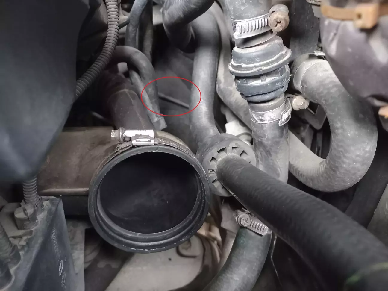 Отже, витягнути цю трубку, а тим більше потім вставити назад, між всіма шлангами буде не так то просто. Стан її цілком нормальний, тому я вирішив не займатися фігнею, а залишити "рідну" трубку.