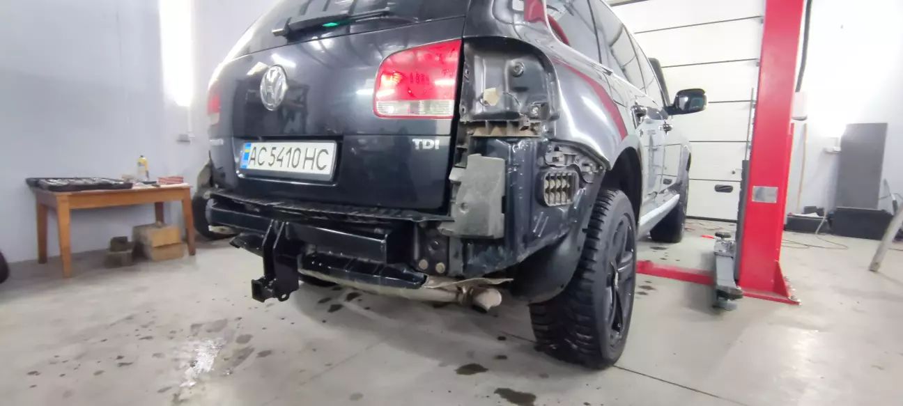 Наступним етапом тюнінгу нашого Vw Touareg є встановлення заднього фаркопа. Обрали фаркоп під американський квадрат, так-як в місце кріплення можна поставити не тільки гак для буксирування, а кріплення шакла, лебідки, кріплення для велосипедів чи мотоцикла, або ще якісь "гаджети".