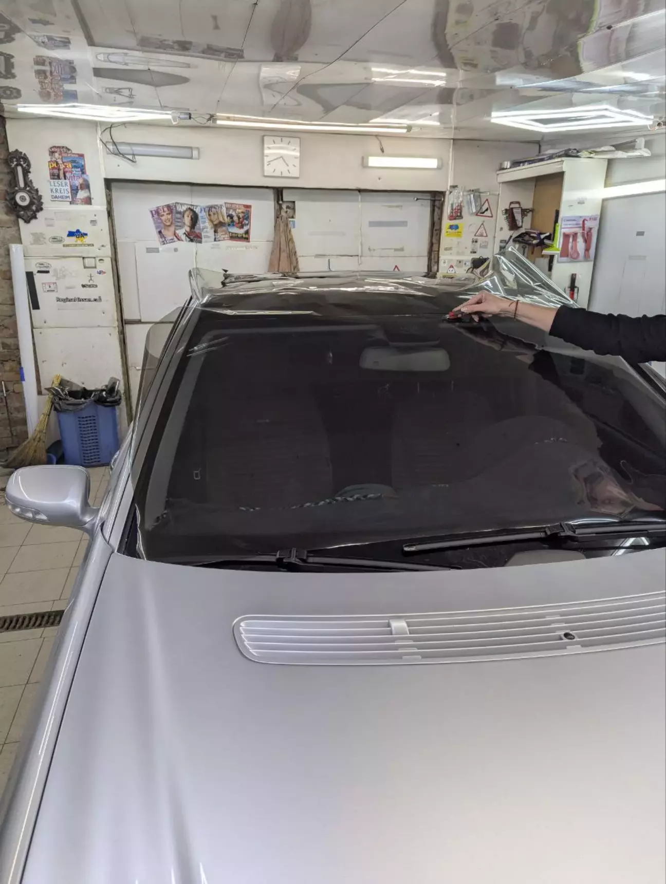 Сталася якась проблема з плівкою на лобовому, мов відслоїлася і з'явилися розводи як тільки но мокрою ганчіркою провели, в сонячну погоду дуже сильно видно і заважає. Скористався моментом поки переклеювали дах і вирішив заодно поклеїти новою плівкою лобове скло. Трішки світліша стала і це взагалі добре. Дуже задоволений!