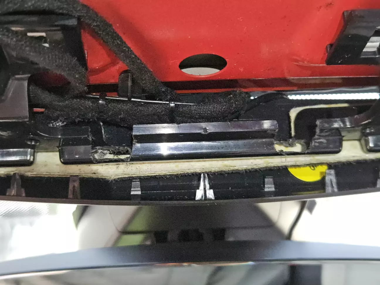 @Symbol використовував магніт, то в такому випадку можна уникнути розбору салону, у мене такого не виявилося. Тому довелося зняти пластик середньої стійки, а саме лише верхню частину, вона кріпиться торксом на 20 до кузову, торкс ховається за пластикою заглушкою airbag, далі треба посунути вниз і витягти на себе. Також треба зняти накладку на стійку лобового.