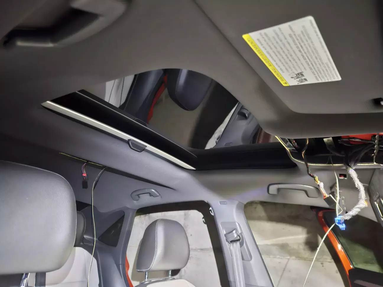 Інший кінець тросу так само просунув до отвору від підсвітки дзеркала в сонцезахисному козирку, а звідти вже до отвору переднього плафону.
