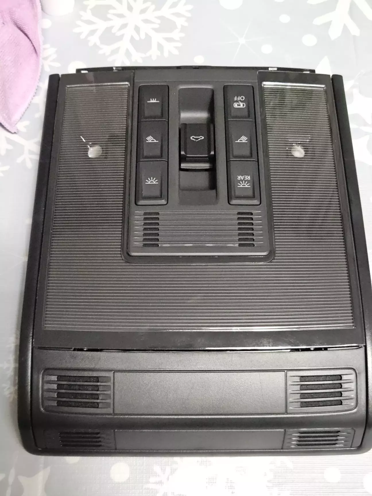 Якщо у вас відсутні кнопки виклику екстренних служб, то я вас вітаю, заглушки без отвору під ці кнопки, схоже не існує в природі, а рідна заглушка - 17A867071A, має трохи вигин з боку стикування з плафоном, і вуха вигину впираються в плафон, що дає велику щілину