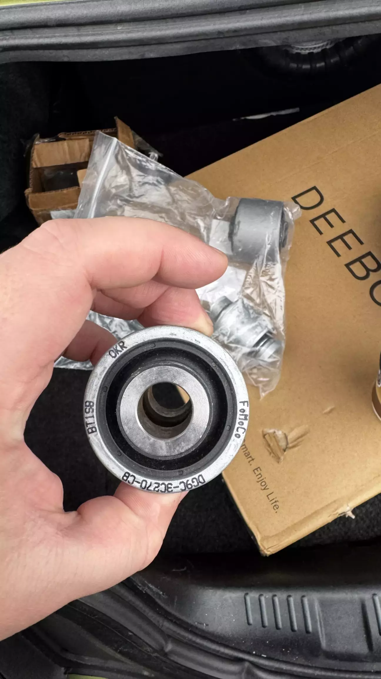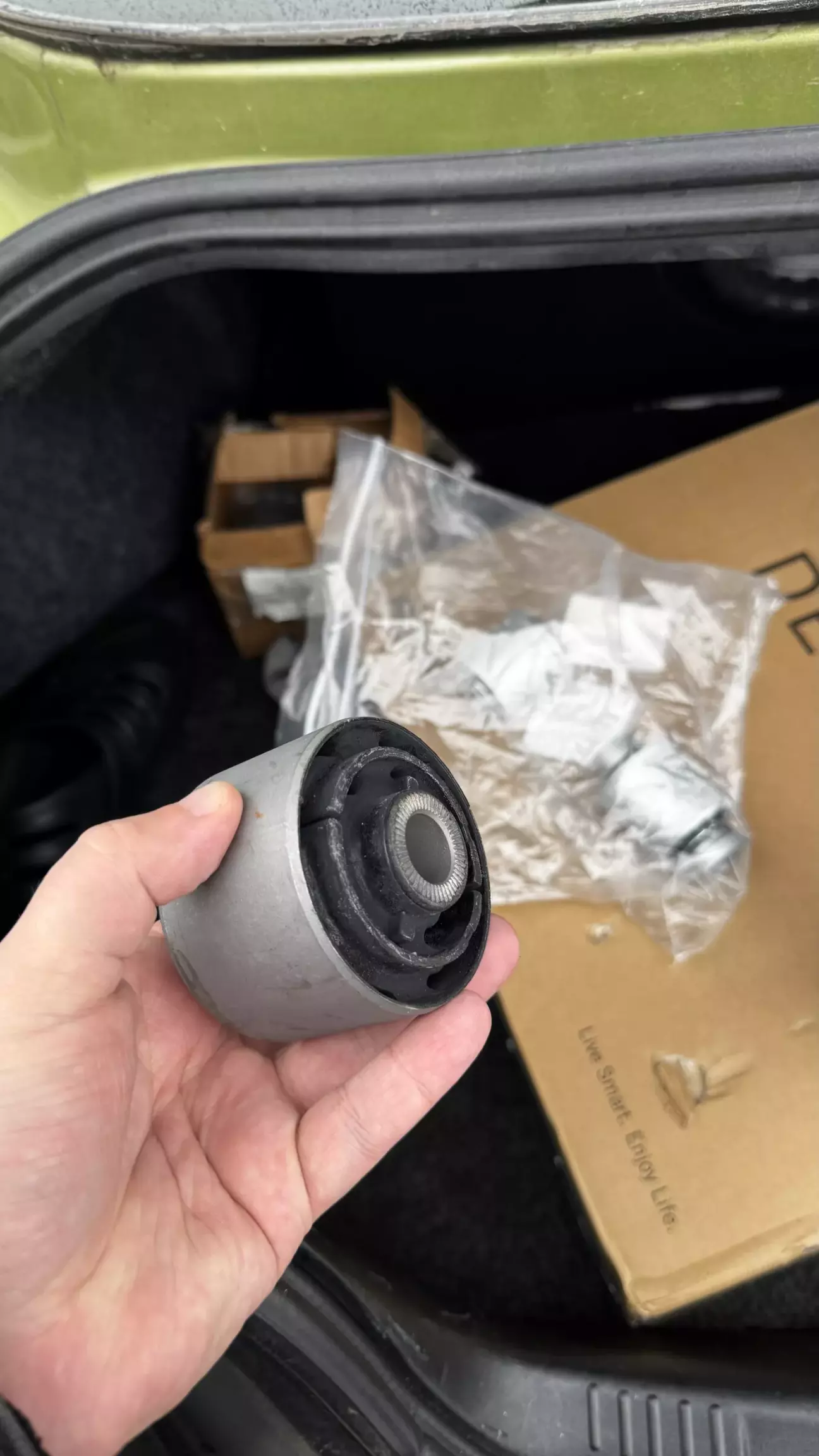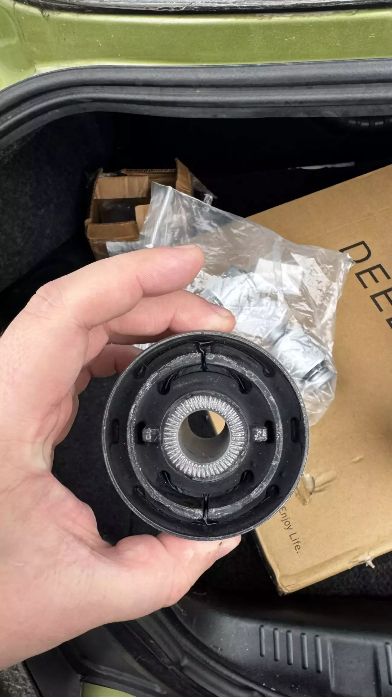 Вже кілька тижнів я стражав від звуку задньої ходовки, тому після довгих пошуків сайлентів замовив по VIN коду 2 комплекти (шукав саме резину, бо поліпро і року нормально не віджили тому їх навіть не розглядав), в комплект входить 1 великий сайлент, і 2 плаваючих. Хоча мені треба були тільки великі, але резина продається тільки комплектом.. Відразу скажу що оригінальних великих сайлентів не існує в природі, так як вони йдуть в зборі з важелем (ціна б/у важеля від 400-600$), за новий я взагалі мовчу.