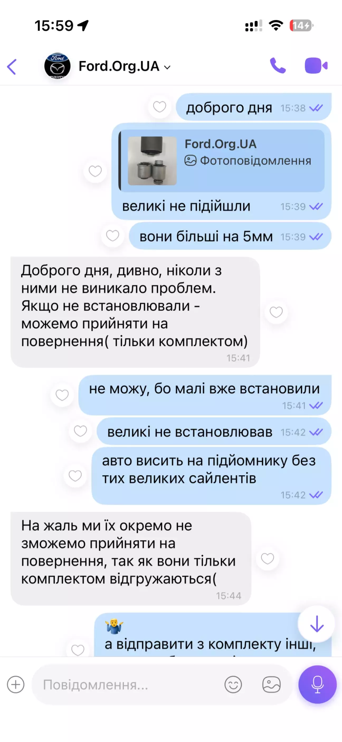 Ну і тут в мене ступор, бо повернути я вже не можу так як розукомплектували один комплект, і авто без сайлента висить на підйомнику.. Прийшлось замовляти знову ПоліПро.