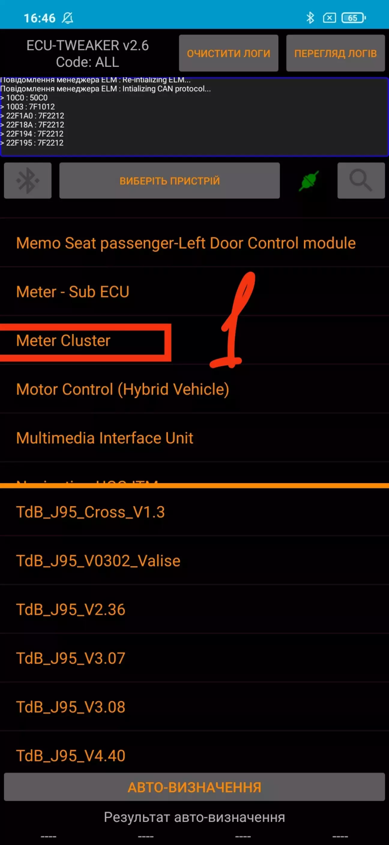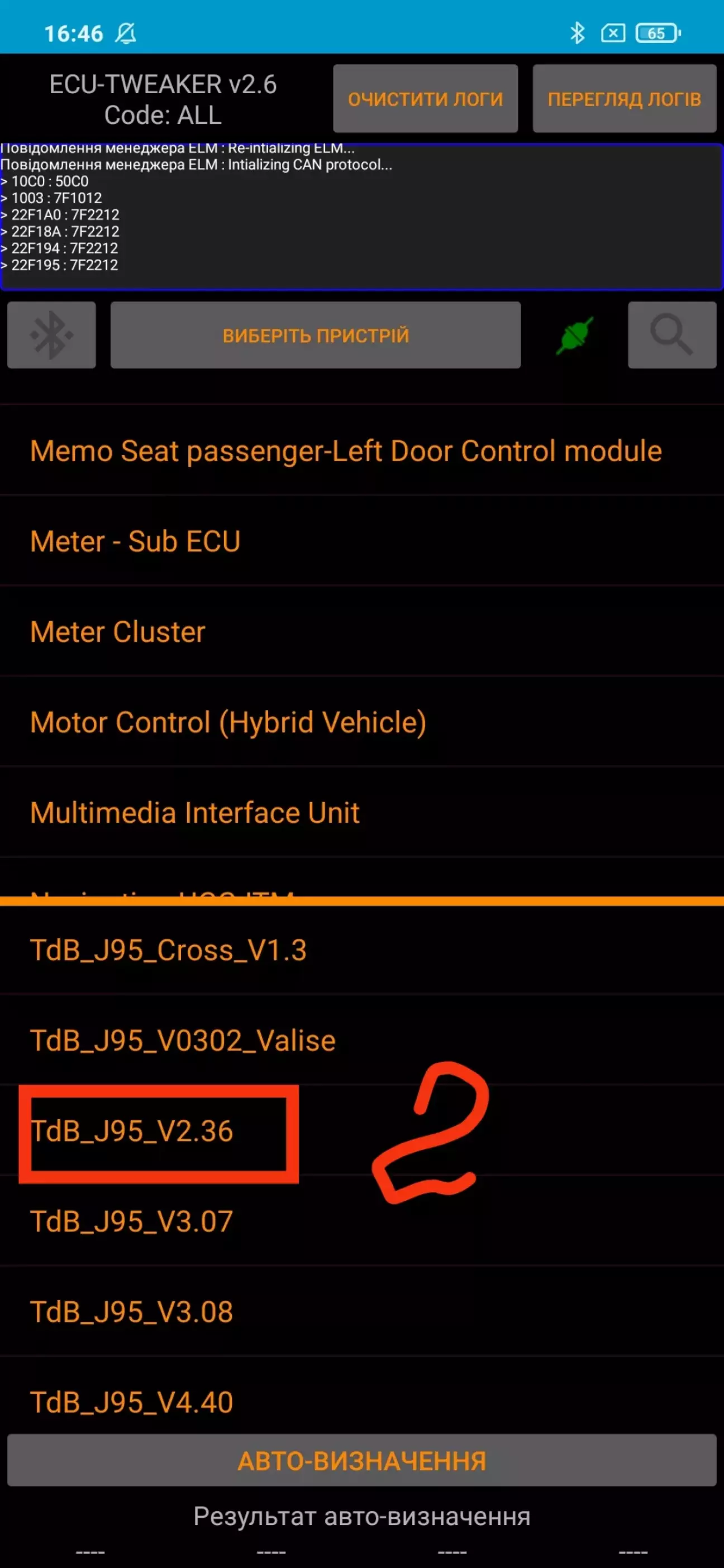 2)Використовуйте автопошук вашого блоку через кан, у мене чомусь він не працює тому я обирав блок який вказаний був в інструкції TdB_J95_V2.36