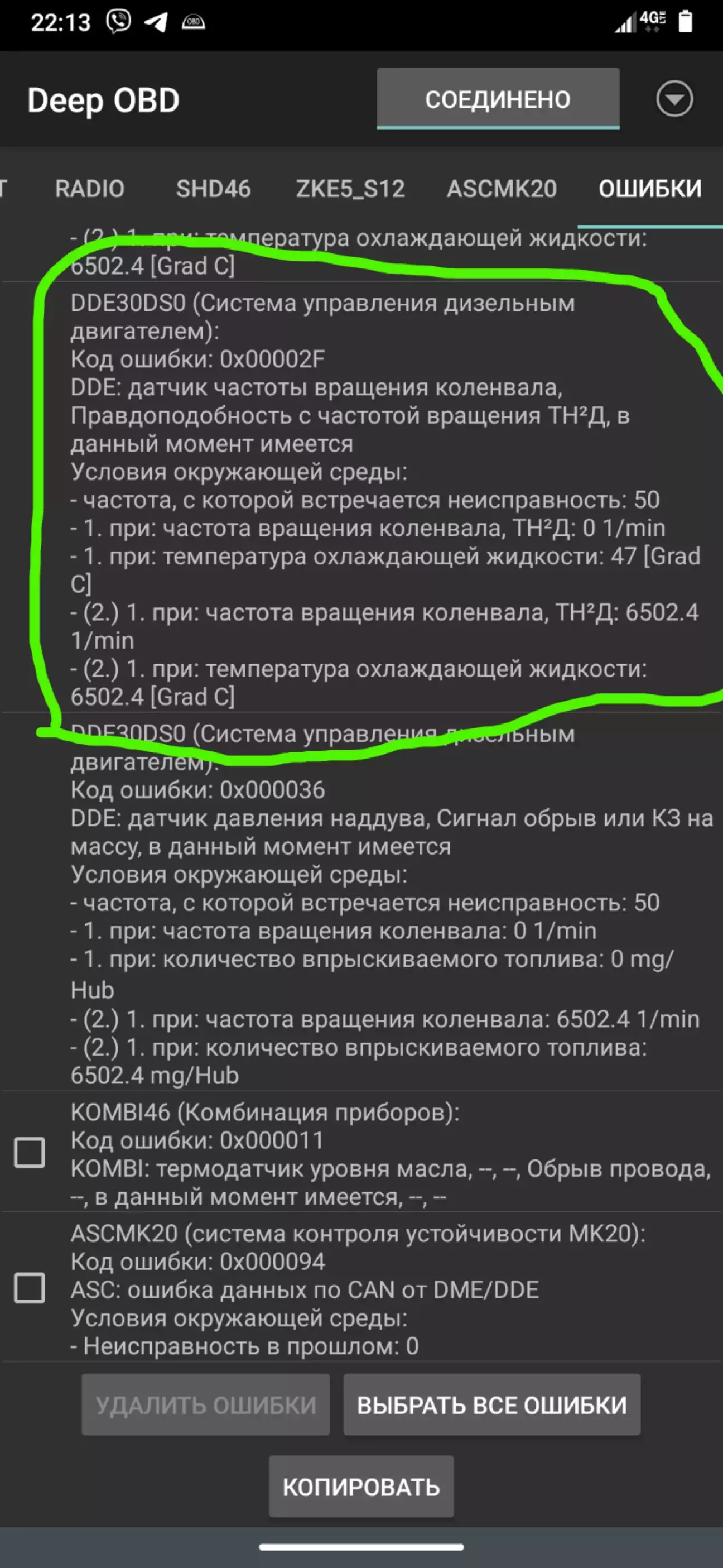 Телефонував знов на сервіс але мене відразу перенаправити до майстра і пробували вирішити проблему. Були різні варіанти що можна перевірити але все було робоче, була навіть пропозиція відправити назад. Перед вихідними вирішив не відправляти а пошукати інформацію що ще може бути. При заведеному двигуні вирішив подивитись параметри і почитати помилкі. І тут вилізла помилка, як виявилось то вона була тільки на заведеному авто.