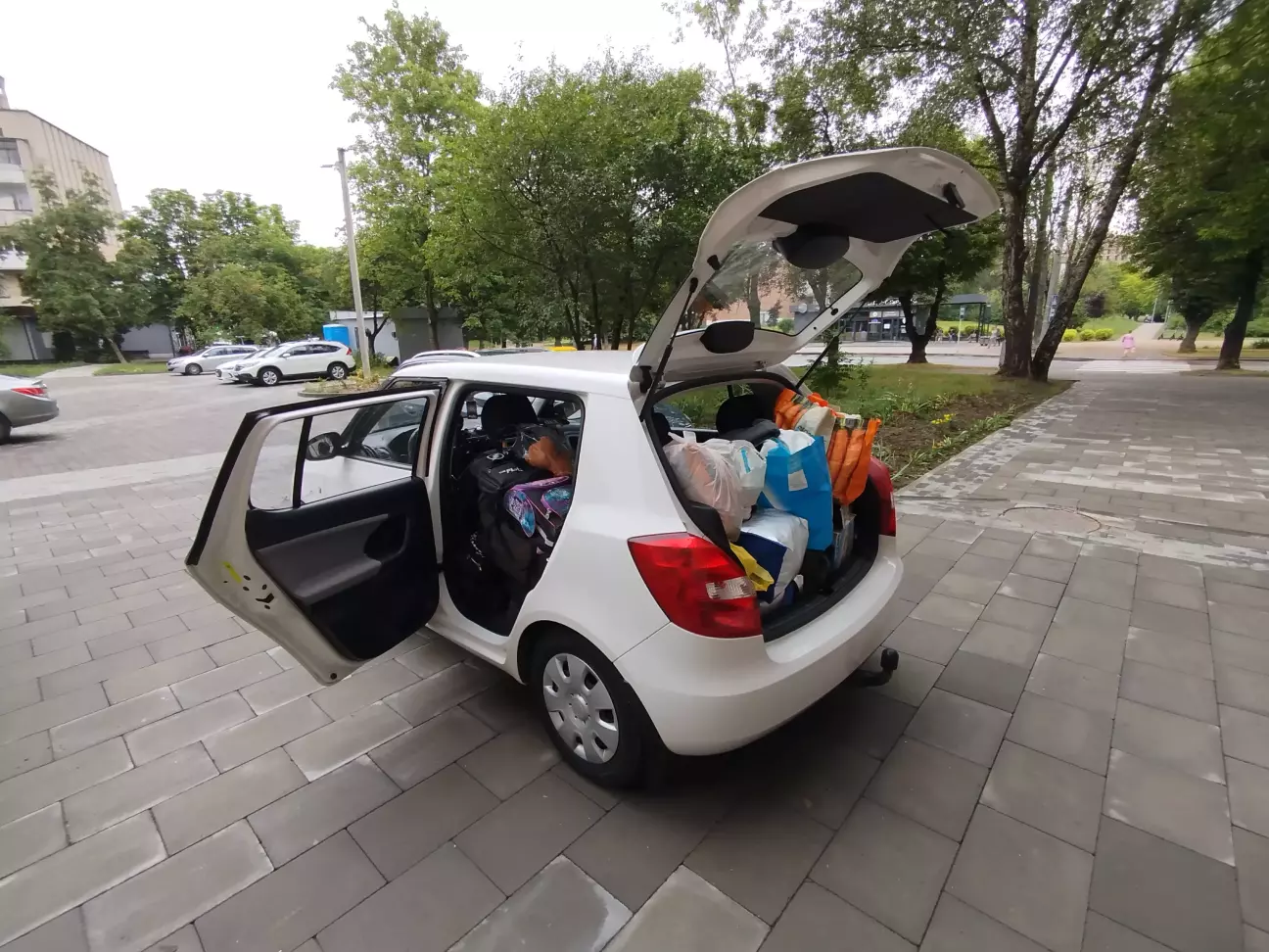 Ну і власне відпустка і поїздка в село Згорани , це трохи не доїжджаючи Світязя . На жаль прогноз погоди був м'яко кажучи не втішний , обіцяли різке зниження температури до +15 . Тому речей з собою трохи набрали . А ще запас провіанту , питної води , улюбленого пива і тому подібного . Складати все в багажник довелося дуже ретельно . Прибрав полку і все зайве з багажника . Все в багажник не влізло , декілька сумок розмістили за водійським сидінням . Про те двом моїм донькам на задньому сидінні місця залишилось достатньо . Фоток машини зробив мало . І погоди не було , і гарних локацій .