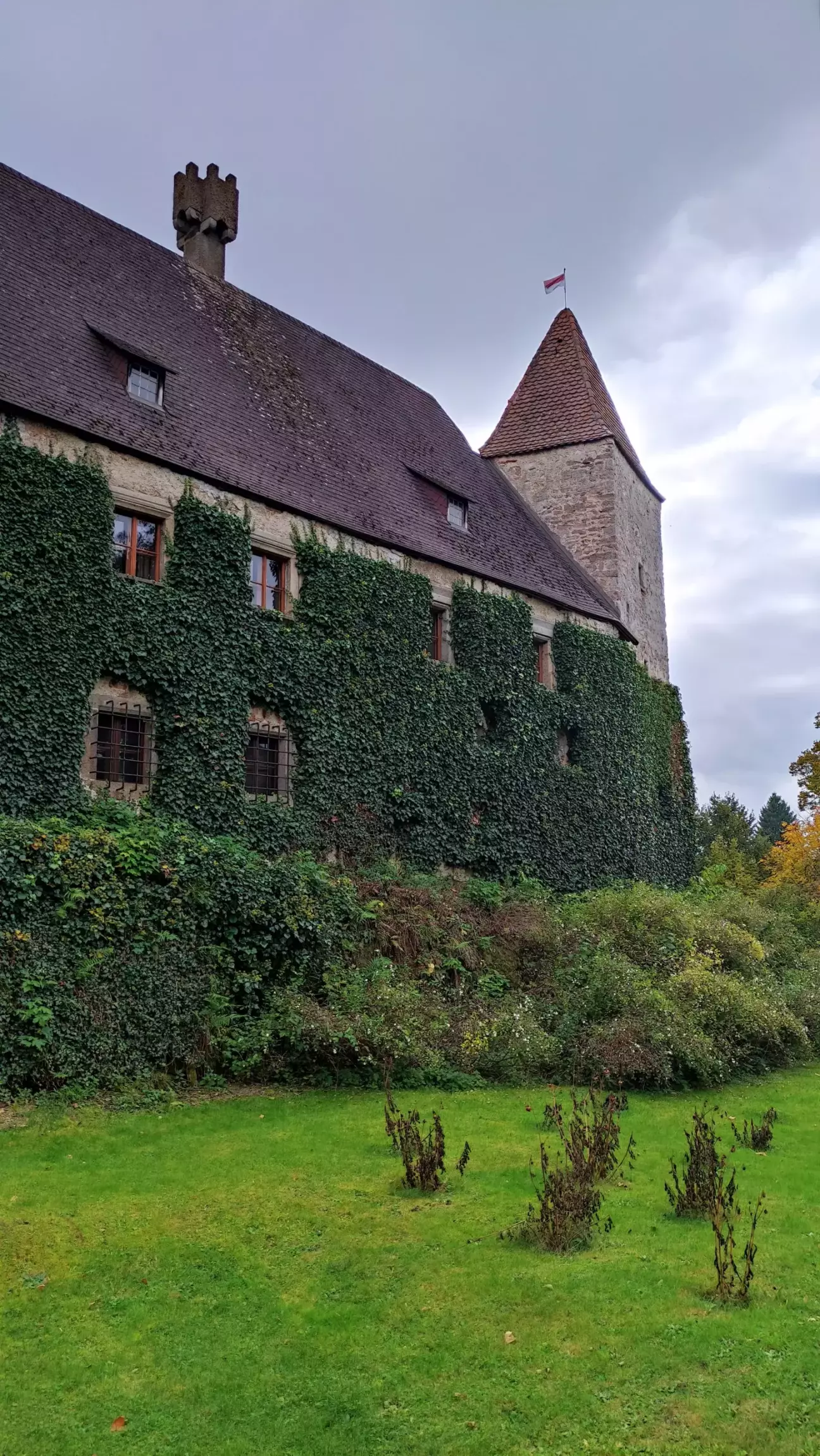 Замок Шенбюель був нашою останньою туристичною зупинкою на той день, бо вже темніло, всі були втомлені від кількості побаченого за весь день. Замок був збудований на початку 12го ст. Марквардусом де Шенбухеле як легко захищена фортеця. Сучасного вигляду набув на початку 19го ст., коли граф Франц фон Берольдінген вирішив капітально відновити дуже пошарпаний старий замок. З 1930го р. і по нині належить родині Зайлерн-Аспанг.