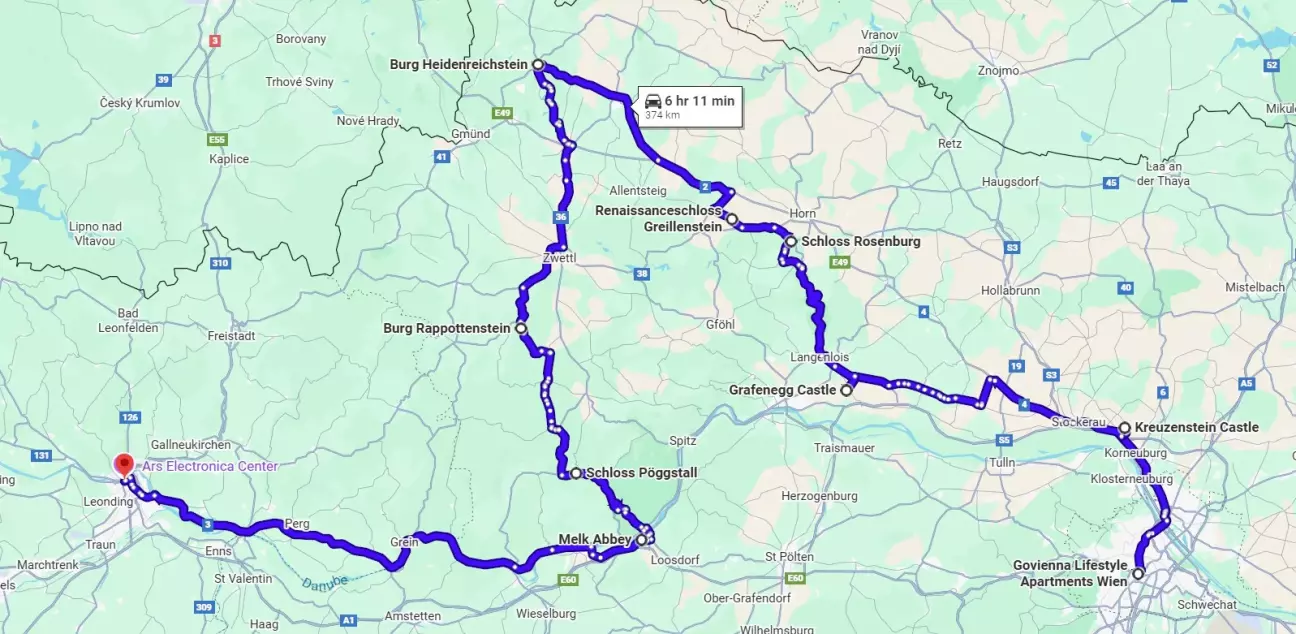 Далі наш маршрут лежав до замку Графенегг, який вперше згадується близько 1500го р., коли його побудував граф Йоганн 1й Гардегг. Поряд із замками Кройценштайн та Аніф поблизу Зальцбурга , він є одним із найважливіших зразків романтичного історизму в австрійській замковій архітектурі. Після кількох змін власників, Йоганн Баптист Верда фон Верденберг перетворив комплекс на укріплений замок між 1622 і 1633 рр. Сучасного ж вигляду замок набув між 1840 і 1888 рр. за часів Августа Йоганна, який замовив фундаментальну перебудову замку у стилі романтичного історизму Леопольду Ернсту, призначеного раніше будівельником собору св. Степана у Відні. З 1967 р., за підтримки урядів землі та федерального уряду, а також завдяки інтенсивним зусиллям тодішнього керуючого маєтком Герхарда Гроссбергера та власника Франца-Альбрехта Меттерніха-Шандора, замок був відновлений та відкритий для публіки. Той факт, що Кройценштайн є так званим «виставковим замком», неодноразово привертав увагу кінематографістів до цієї перлини. Фільми та телесеріали знімаються в Кройценштайні вже понад 100 р. З більш-менш нам відомих можна назвати те, що у 1986му р. замок був одним із місць зйомок історичного драматичного серіалу "Петро Великий". У замку також частково знімали диснеївський фільм "Три мушкетери" (1993). У 2008му р. замок Кройценштайн був використаний як знімальний майданчик для американського фільму "Останній тамплієр" за участю Ніколаса Кейджа. Німецько-канадський телевізійний фільм "Стовпи Землі" був заснований на однойменному романі Кена Фоллетта, а замок слугував фоном для зйомок. Деякі сцени для серіалу Netflix «Відьмак» були зняті там у 2019му р., а сцени для серіалу Disney+ «Шардлейк» були зняті там у 2023му р.