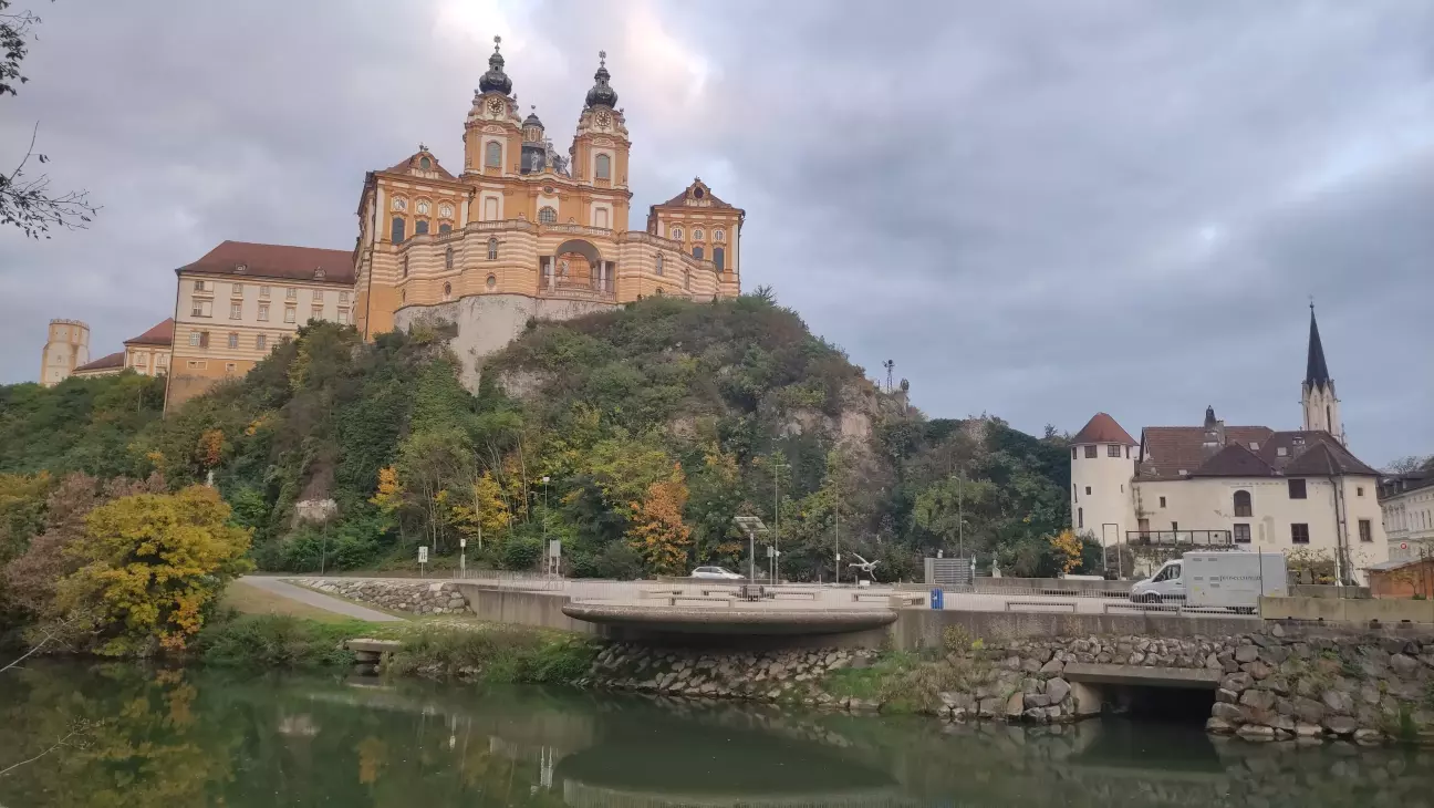 Через кілька хвилини я вже паркував Гольфа біля Мелькського абатства, що внесено до списку об'єктів Світової спадщини ЮНЕСКО в Австрії. Абатство було засноване у 1089му р., коли Леопольд 2й, маркграф Австрії, надав один зі своїх замків ченцям-бенедиктинцям з Ламбахського абатства. У 12му ст. при монастирі була відкрита гімназія - найстаріша школа Австрії. Також при абатстві була заснована бібліотека, яка стала відомою завдяки великій колекції рукописів. Монастирський скрипторій став основним місцем для виробництва рукописів. У 15му ст. монастир став центром монастирської реформи (згодом отримала його назву), яка була спрямована на відродження чернечого життя у Австрії та Південній Німеччині.