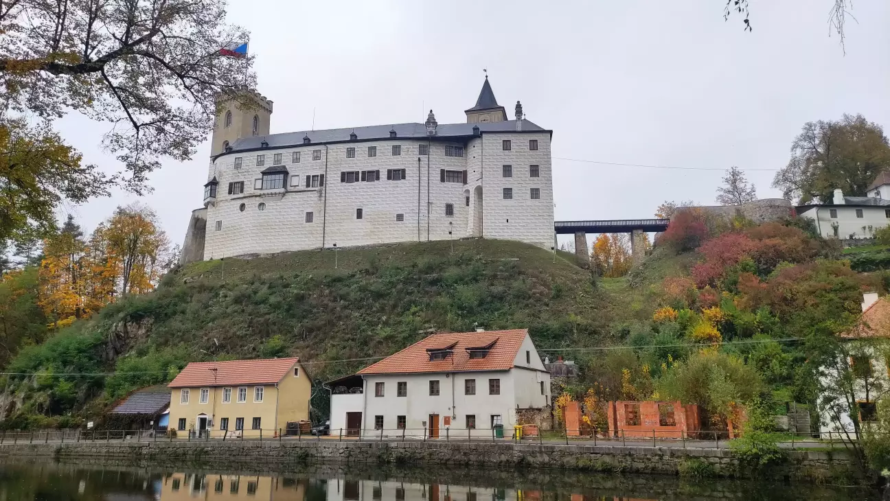 Власне на цьому замку ми і попрощалися із туристичною Австрією. На останок я хіба що зупинився на одній із останніх австрійських заправок перед чеським кордоном. Навіщо? Все просто, бензин тут на 20% дешевше ніж в Німеччині. Так, не скрізь, такі смачні ціни ми бачили лише в перші 2 дні подорожі і тепер ось наприкінці, а в решті регіонів ціни були близькими до німецьких. Таким чином на згадку залив Гольфу повний бак 95го, щоб вистачило на пару років звичайної експлуатації))) Чому я попереся до Чехії? Все просто - щоб відвідати пару замків, які розташувалися південніше від Чеського Крумлова, який ми відвідали під час нашої весняної відпустки (тут чи тут). Тоді вони просто не потрапили до нашого маршруту, тому я вирішив виправити це непорозуміння і налаштував навігацію до замку Рожмберк. Вважається одним із найстаріших замків Богемії, стоїть на мисі, вирізаному з трьох сторін біля річки Влтави. Вперше згадується в 1253му р. в документі, підписаному Воком фон Розенбергом. Його вважають колискою дому Рожмберкових, відомого також як «Володарі Троянди» - історичної чеської аристократичної родини. Готична фортеця була змінена в епоху Відродження, а потім у 19му ст. в період «готичної пристрасті Тюдорів». Останні власники замку, родина Букуї, перетворили його на музей, відкритий для громадськості, один з перших музеїв у богемській землі.