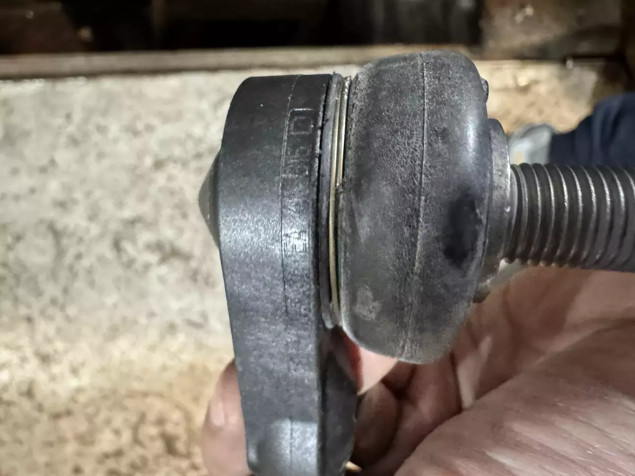Болталась легенько. Проблема була в ній. Замінив ліву та праву, тепер тишина. Гайки ставив старі. Накрутились чітко.
