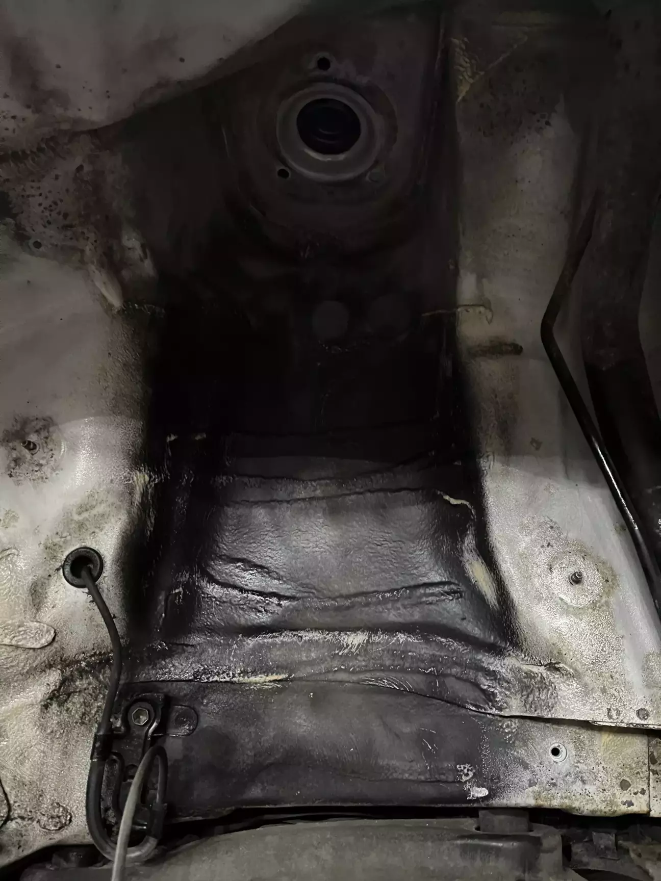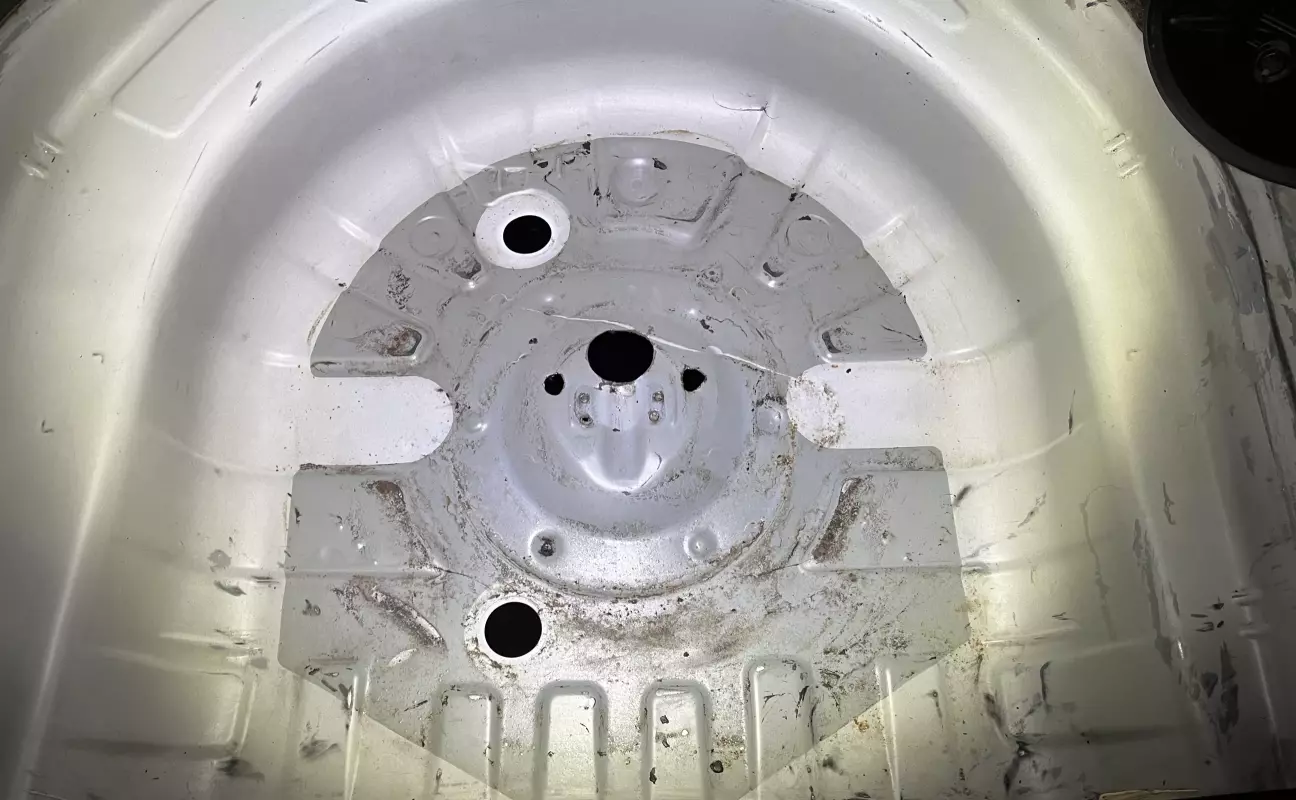 Вже давненько почав діставати стукіт з задньої частини авто. Таке відчуття, що якісь дрова у багажнику лежать. По підвісці все передивились. Все норм. На підйомнику нічого не знайшли. Майже нічого. Знайшли тріщини на ніші запасного колеса, де лежав газовий балон. Дістали балон, заварили, пройшлись всю нішу антикорозійним ґрунтом. Доречі, ніша мала гарний вигляд. Я думав, що буде більш погано