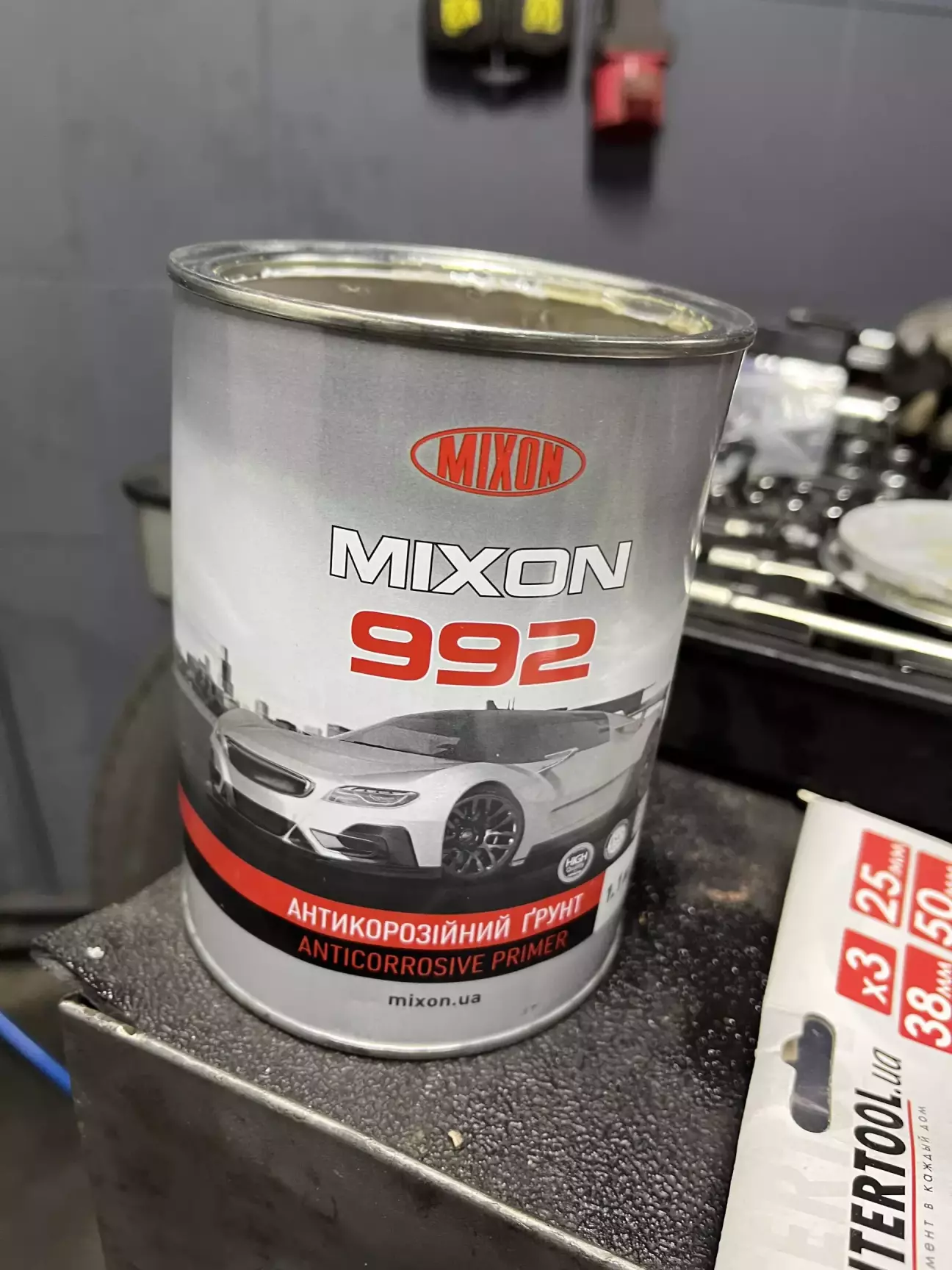 Поки йшов процес зачістки корозії та підготовки до обробки, сходив на ринок, благо він поруч, купив літр антикорозійного ґрунту та балон ґравітекса
