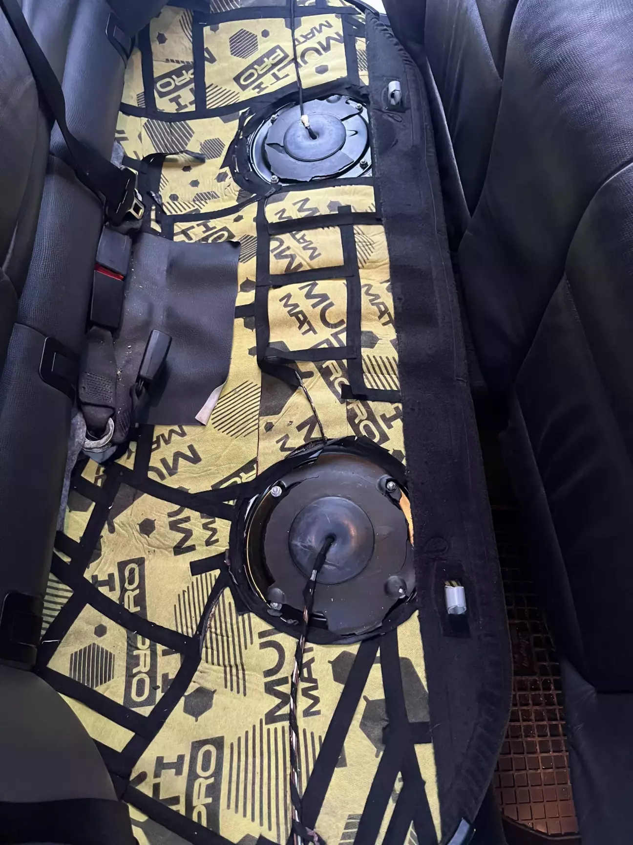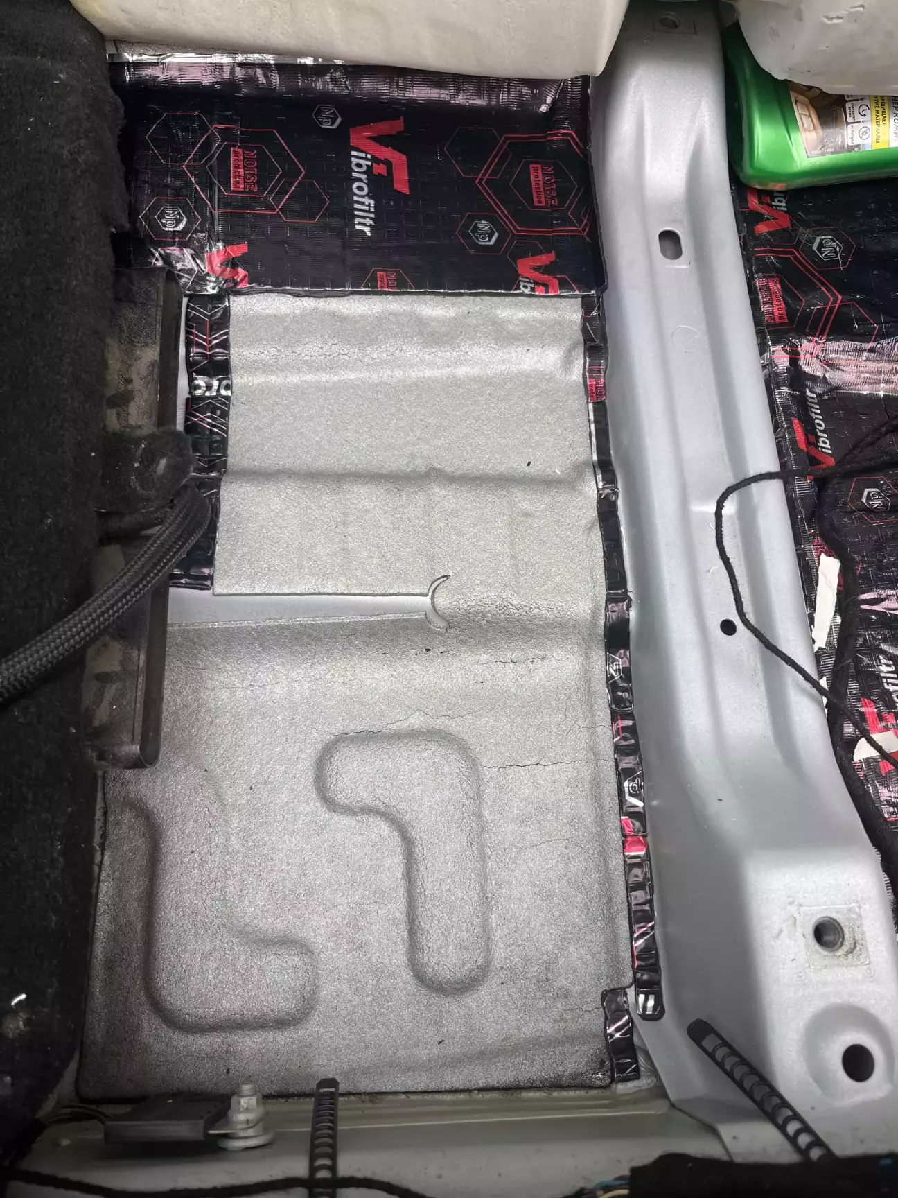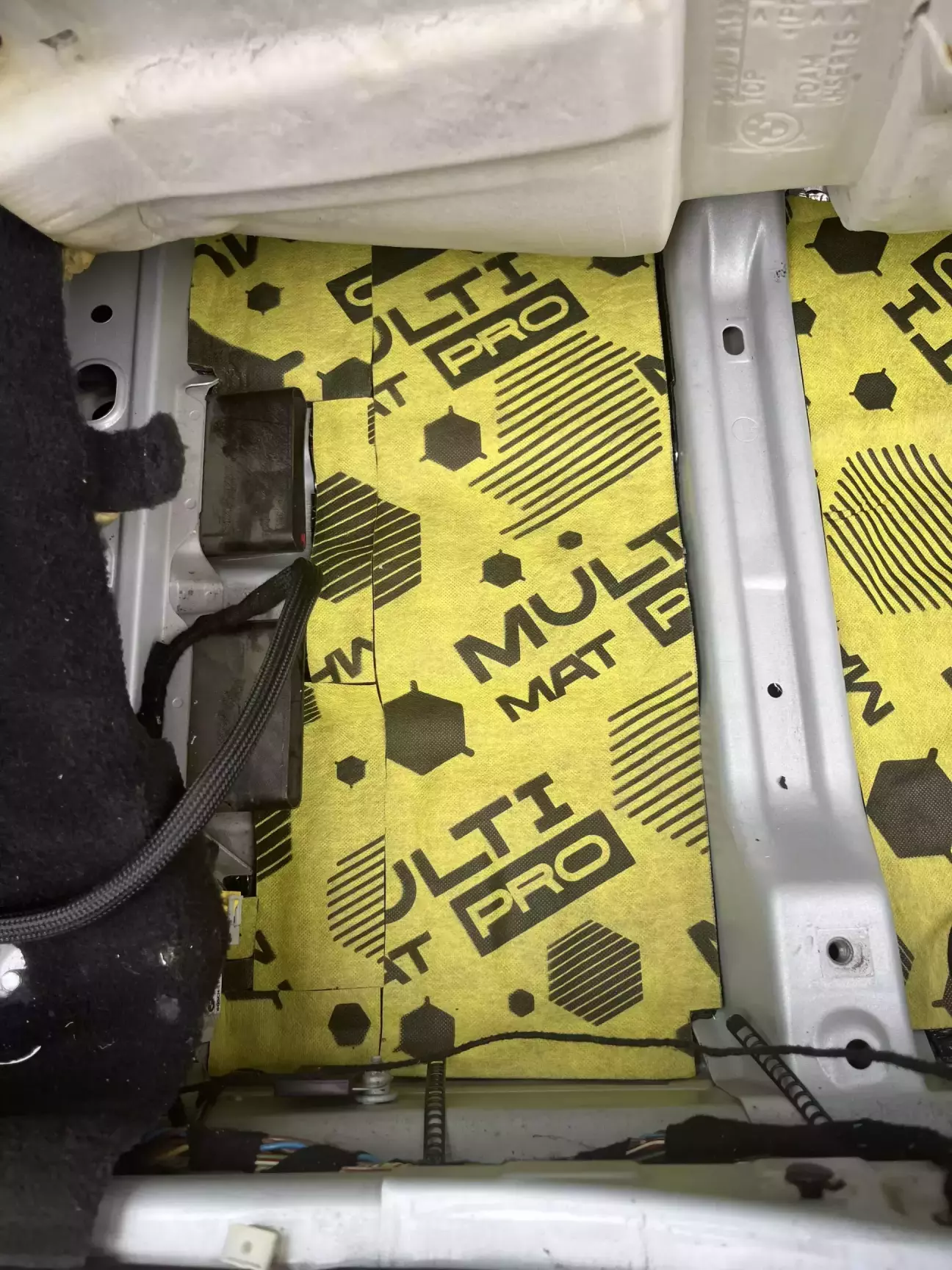 Клеїв баті щоб трохи йому тихіша машина була і залишилось чимало залишків - це і змусило з чогось починати вже. Обрав напростіше для розбору місце - під заднім диваном і вже тоді разом з тим підлогу задніх пасажирів. На підлогу клеїв 4мм, а під диваном 2мм. Поверх ще наклеїв сендвіч.