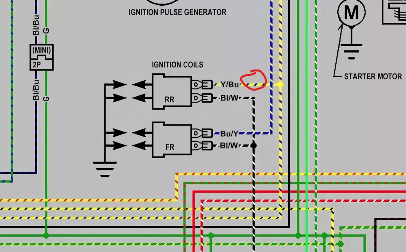 · Сигнал: Провів дріт через весь мот до правої катушки запалення. Підключаємося до жовто-синього проводу. Фото, нажаль, не зробив. Але від катушки виходить два проводи. В мене він жовто-синього кольору.