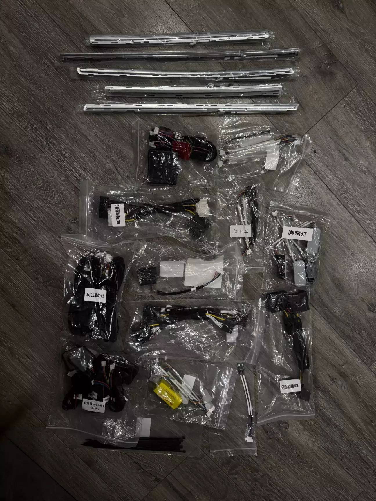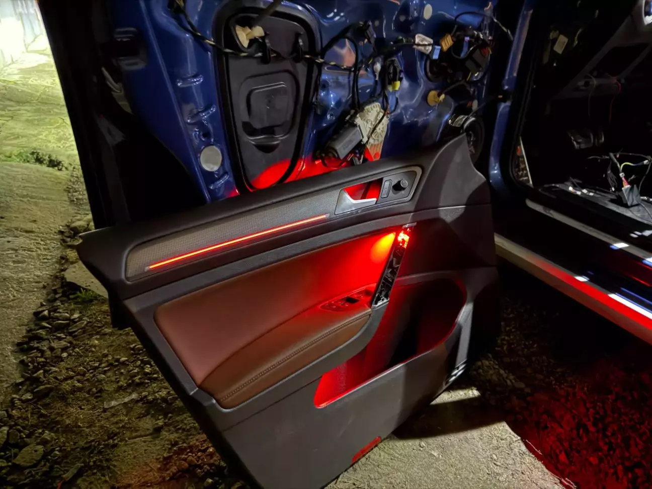 Наразі є проблема по заднім картам дверей, в них немає місця під вставки з підсвіткою, тому треба замовляти або новий декор, або б.у карти в колір передніх щоб зняти з них декор.