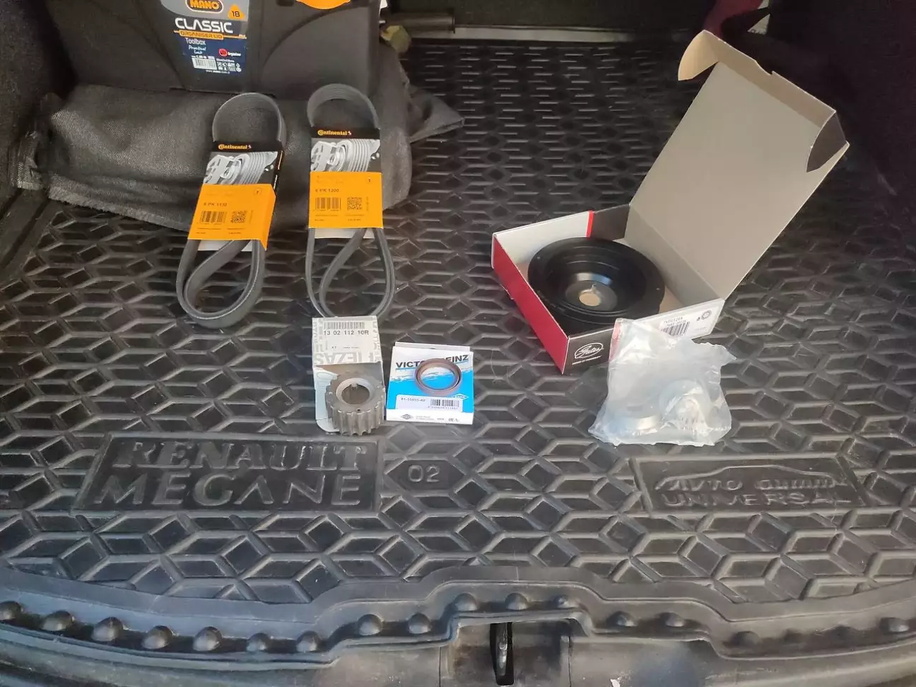 При обслуговування вузла ГРМ мені повідомили, що мій шків колінвалу має зношений демпфер, і це може бути небезпечно. Надивився в ютубі відосів і збагнув, що діло серйозне. Також дізнався, що шестерня колінвалу встановлювалася без шпонки, що не дуже добре, а шестерня зі шпонкою може врятувати двигун від перескакування ременя ГРМ. Вивчив питання та замовив запчастини. Цього разу замовив цільний шків, без демпфера, аби виключити можливу проблему в майбутньому. На сервісі виконали заміну, щоправда потік передній сальник колінвалу, олива потрапила на ремінь ГРМ, тому замінили всі сальники, а також ремінь. А рідна шестерня колінвалу таки дійсно виявилася без шпонки.