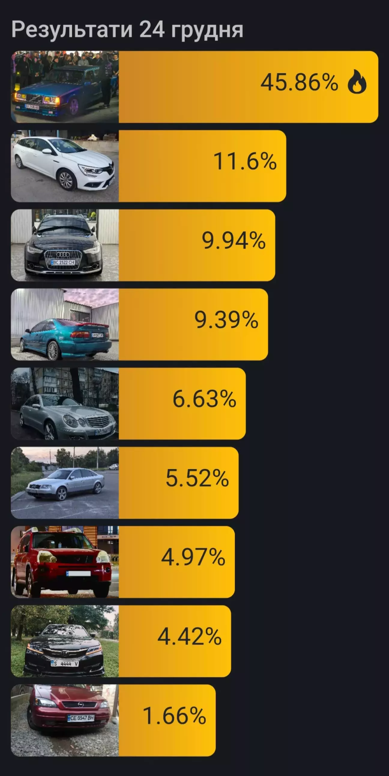 Ну ось і закінчилось голосування. Моє авто зайняло 7 місце.