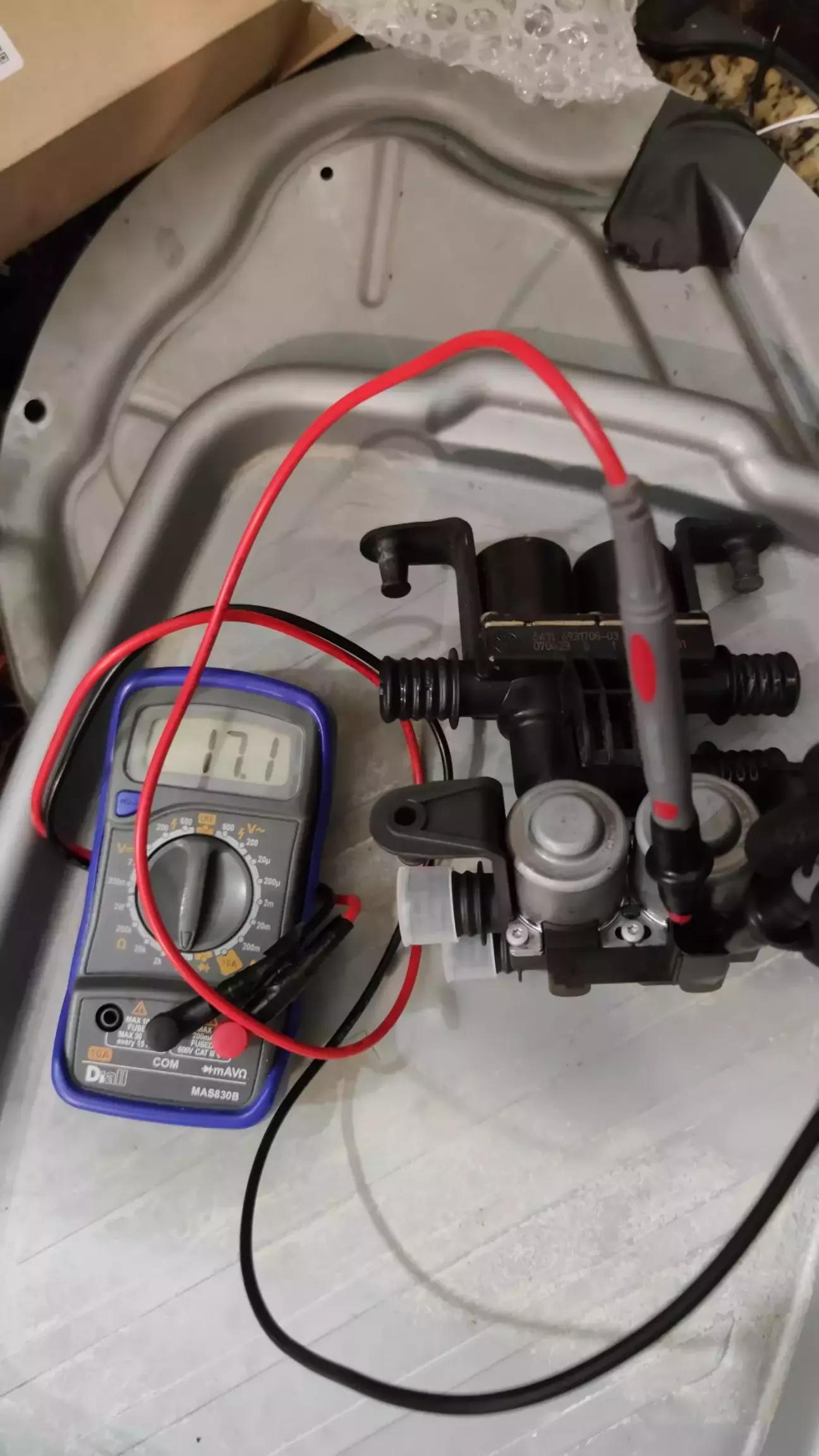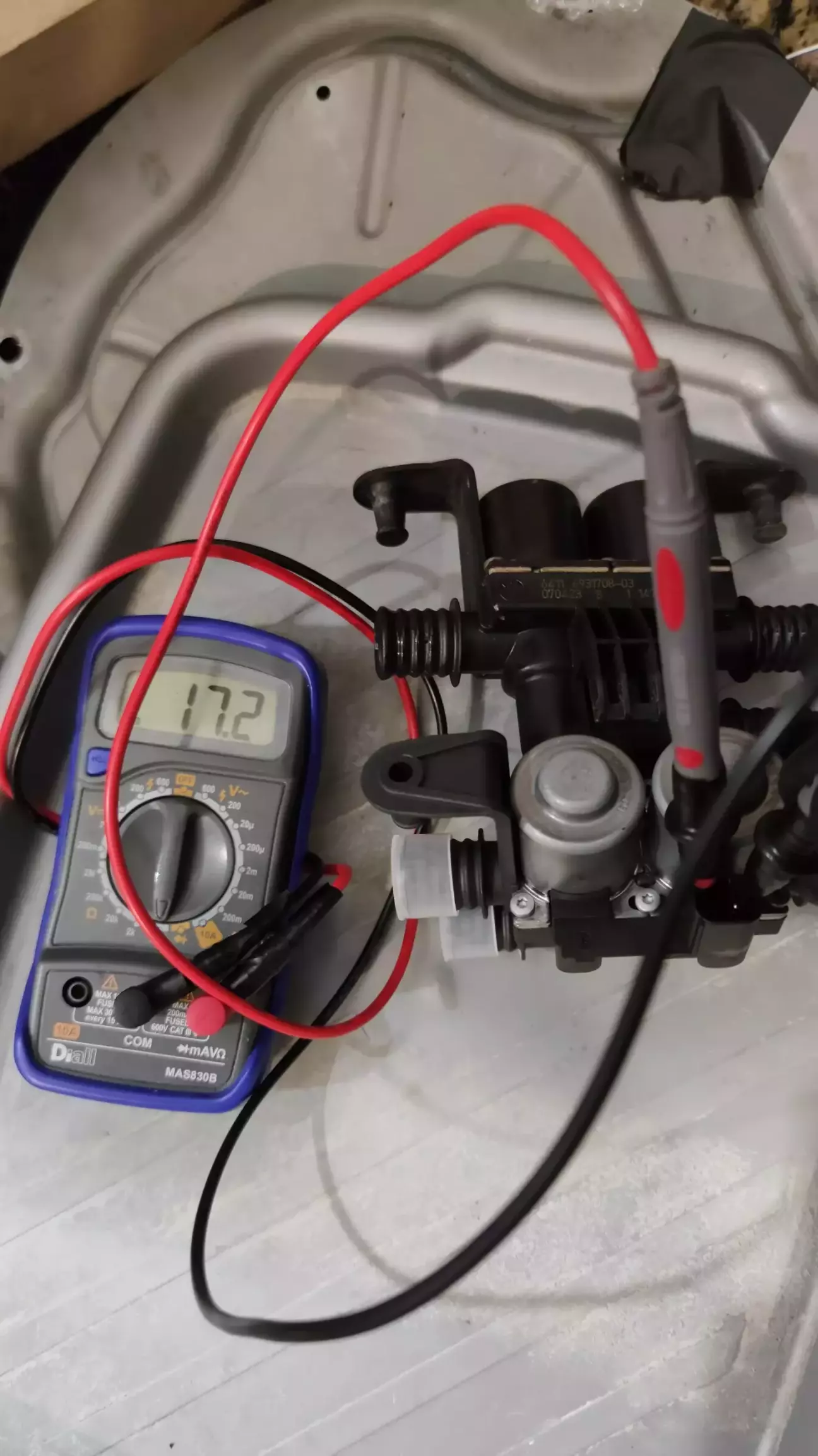 Стан також можна визначити по показам опору катушок на самому клапані. Піни 1-2 для пасажира, 1-3 для водія. Опір має бути в районі 16 Ом. Несправна сторона показала 1.6 Ом.