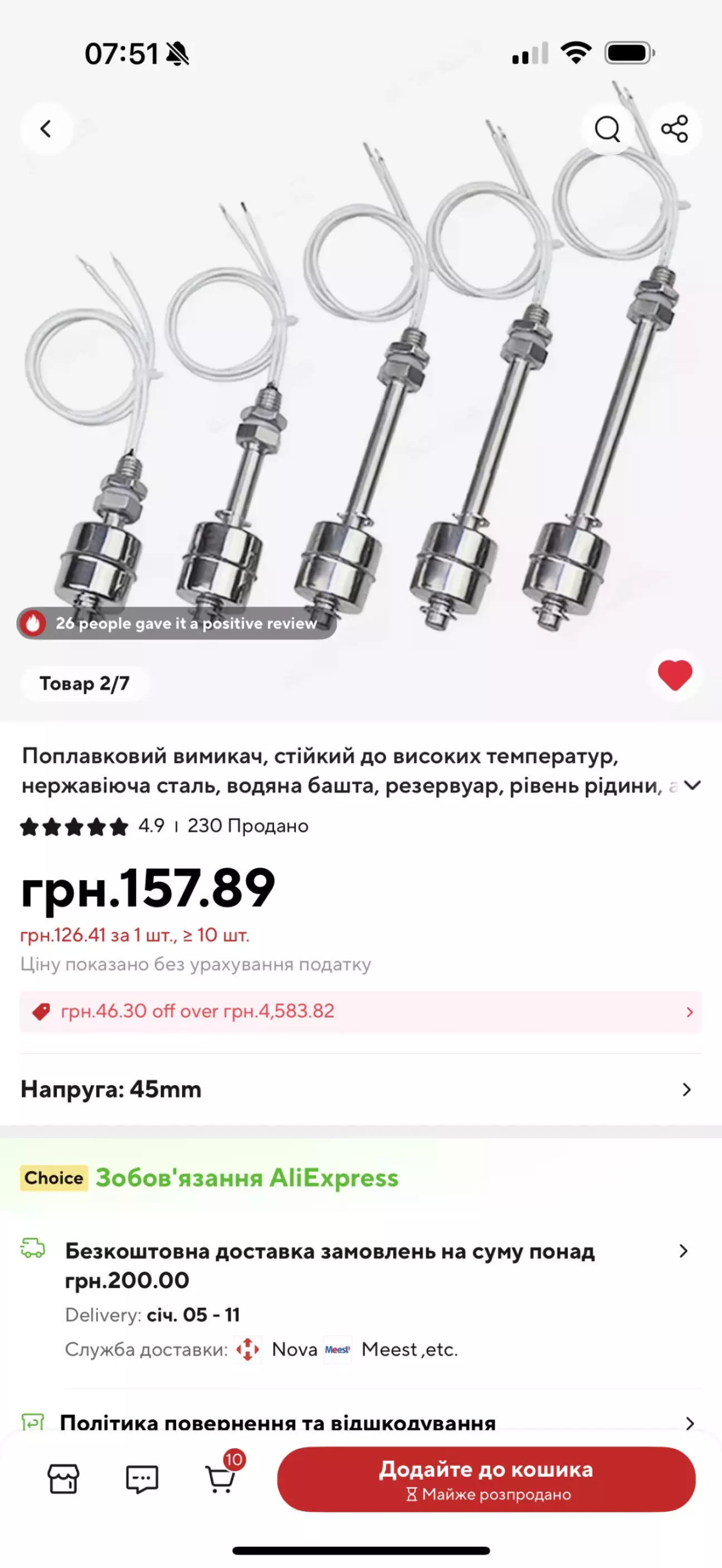 Після майже року безуспішних пошуків - вирішив подумати про альтернативу. Випадково на Алі натрапив на поплавковий датчик, дуже схожий на мій. Навіть нібито з нержавійки.