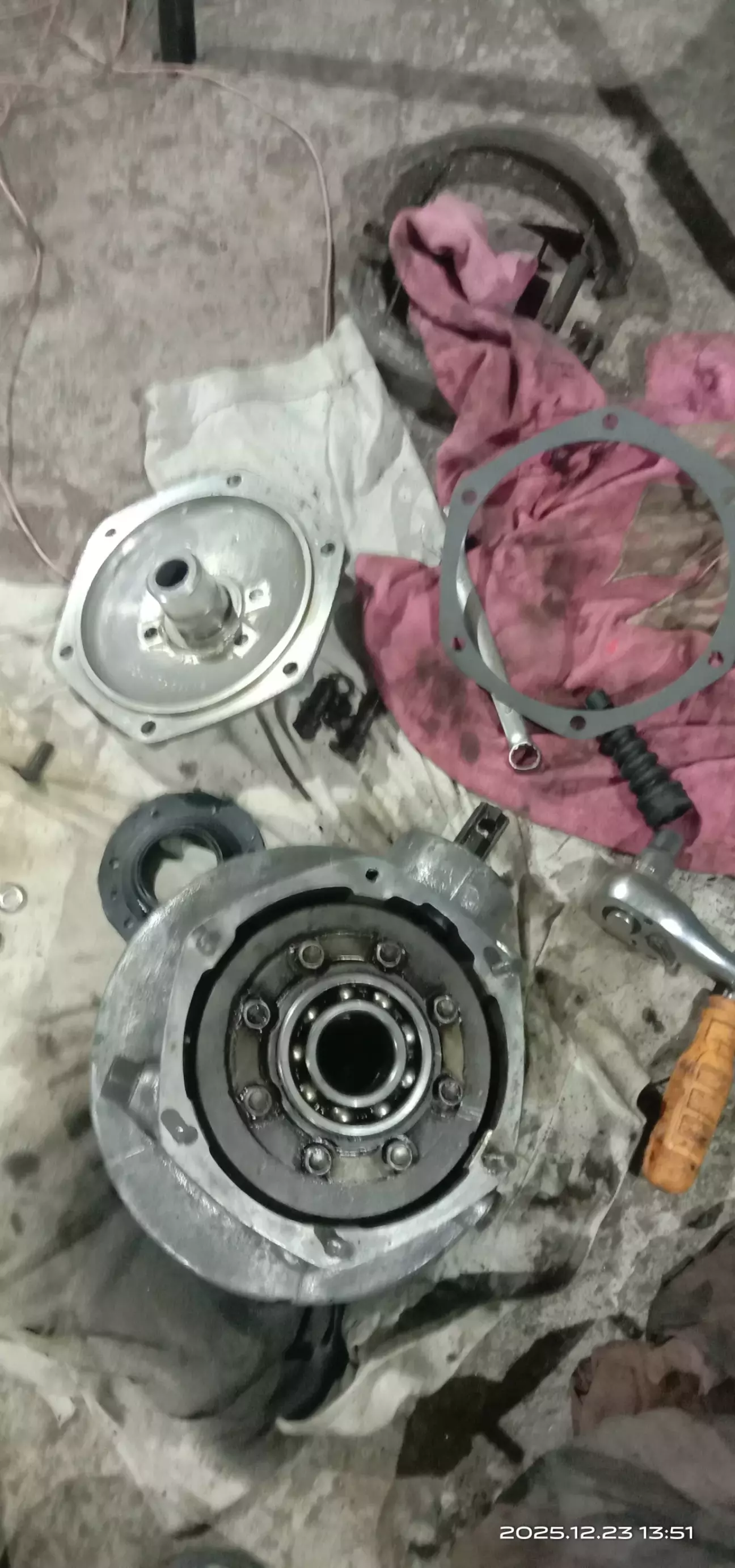 Подшипники оказались в хорошем состоянии я их не менял сальники,на кардан,стёрты полностью и дубовые.сальники поменял,прокладку.осталось одеть кардан,он покрашен и защиту крестовины,она тоже покрашена.