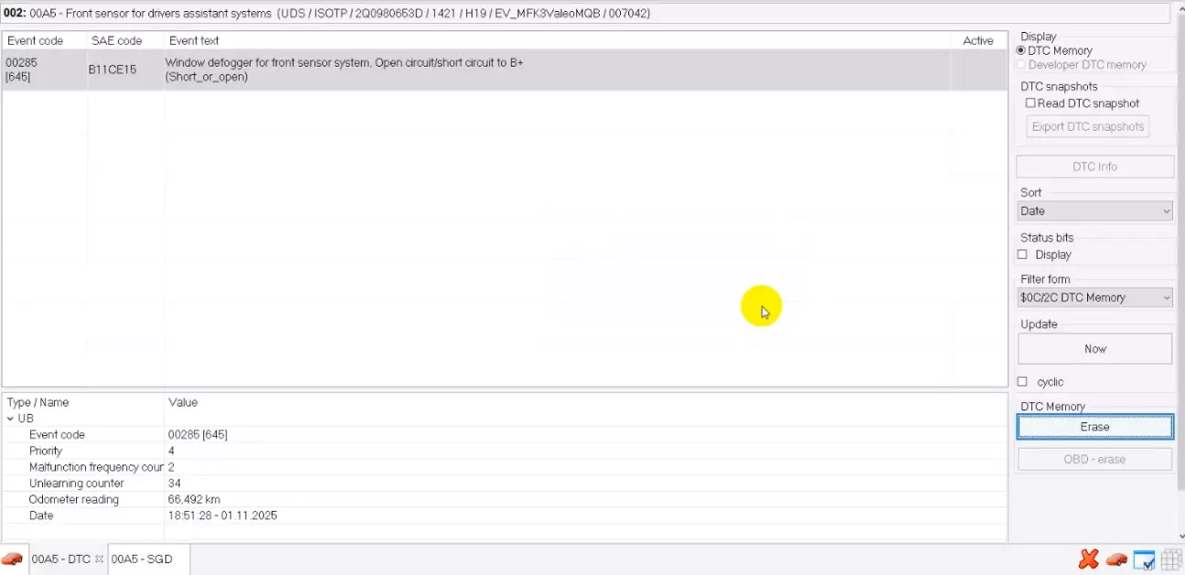 Перші холодні і вологі дні показали, що облицювання камери доведеться розбирати, бо блок містив помилку - B11CE15- Windshield defroster for front sensor system. Open or Short to Plus
