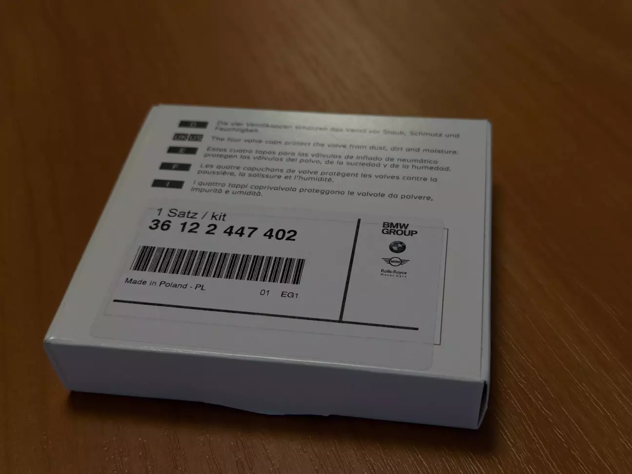• Оригінальний комплект із чотирьох алюмінієвих ковпачків для вентилів шин: 36 12 2 447 402 - 11$;