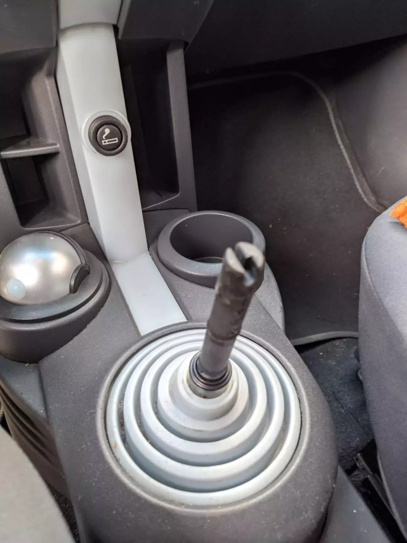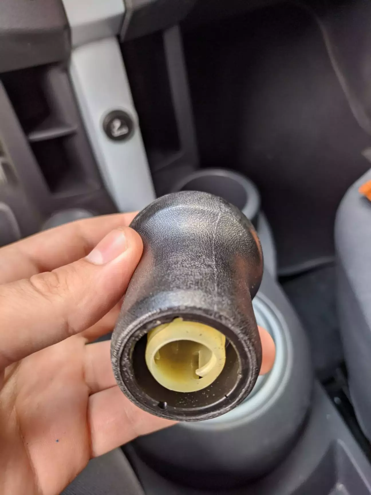 На фото бачимо, що фарба почала лущитись, відповідно давала неприємні відчуття на долоню, при перемиканні передач. Щоб зняти цю біду, багато розуму не треба - потрібно за неї чим покріпше вхватитись та потягнути догори (обережно зуби). Далі знімаємо пастикову трубку з куліси. Скоріше за все, у вас можуть зламатись або тріснути вуса кріплення кнобу до трубки, тому, будьте або дуже обережні, або прийміть як даність "умерла так умерла".