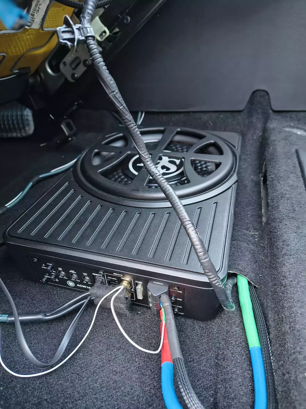 10-ти дюймовий активниий сабвуфер в закритому алюмінієвому корпусі. Сабвуферний динамік з дифузором з поліпропілену, гумовим м'яким підвісом. Огляди шукайте в ютубі.