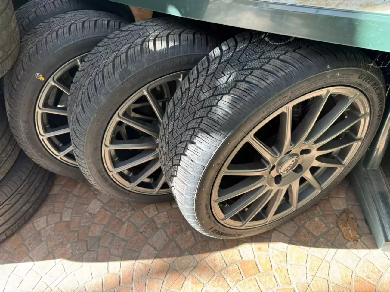 после прошлой зимы принял решение переходить на зиму 18", лето 19 и зима 18" что б была, по тому как снял зиму, выложил на продажу неспешную или обмен 17 на 18, в сборе или отдельно… висело объявление достаточно долго, потом одноклубник предложил поменяться мои "авусы" 17" на 18", в сборе на в сборе, там лето 215/50/18, диски ровные, краска нормальная, нет бордюрки, так что перекрашивать не нужно, и цвет графит какой то, что на мою подходит очень не плохо, как показала практика) к тому же диски с нужными мне параметрами, именно то что я и хотел — 18" 8J ET35! поменялись мы колесами, не удержался и попробовал поставить ти огромные бублики))