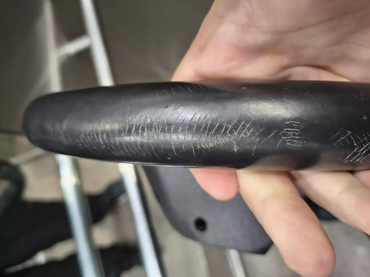 Усім ніхао) не знаю нащо я це роблю, бо на машині не їзджу майже, але дуже мене кумарив руль останні роки, обліз, лип до рук, коротше дратував. Оскількі грошей багацько не маю, то перешив руля подарувала жінка на святого Миколая) А оскількі в неї теж грошей не дуже багато, то вирішено було не вийо, а зробити практично, тому руль зробили з полішось там вінілу. Вийшло особисто для мене дуже непогано, й йа даволін)