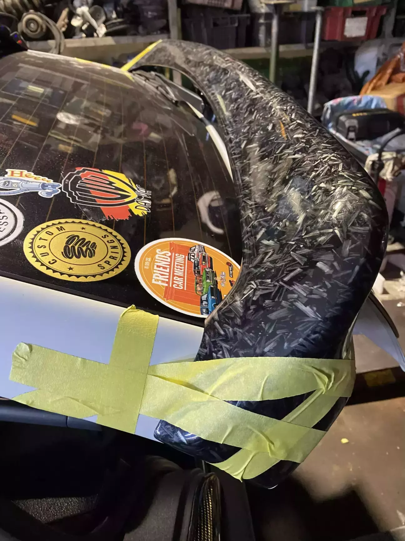 Итак летом был куплен вот такой интересный спойлер,очень долго его искал. Сначала думал его покрасить просто в черный,но потом было решено сделать его тоже в кованый карбон что бы все смотрелось в одном стиле,вышло вроде хорошо. Так что на 2025 год по внешнему стилю сделать все что хотел.