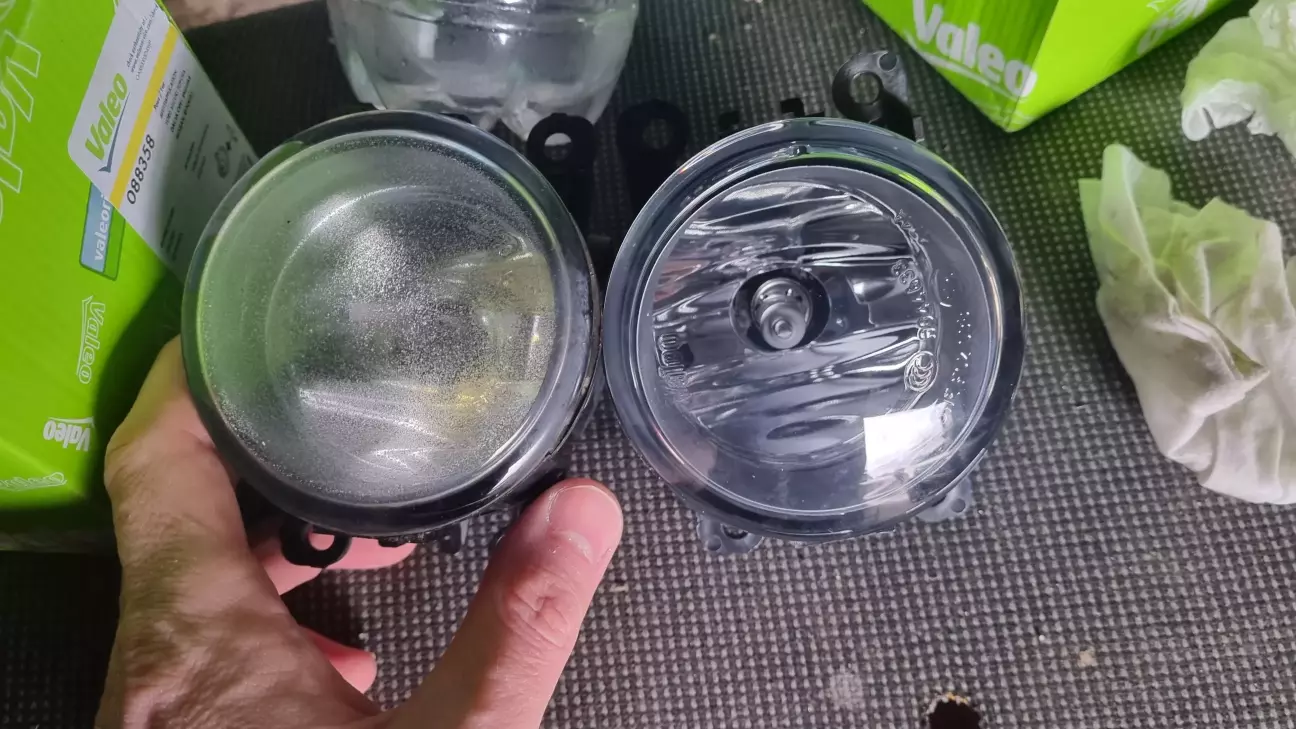 Як писалось тут, при поліруванні фар протитуманні фари були знатно попісочені. Через що світили погано. Дуже розмита світлотіньова межа, невидне налаштування по горизонту - загалом, давала сильне "молоко", особливо при власне тумані. День коротшав, зима прийшла разом з відключеннями світла, а разом з ними і дуже темними вулицями та пішоходами.
