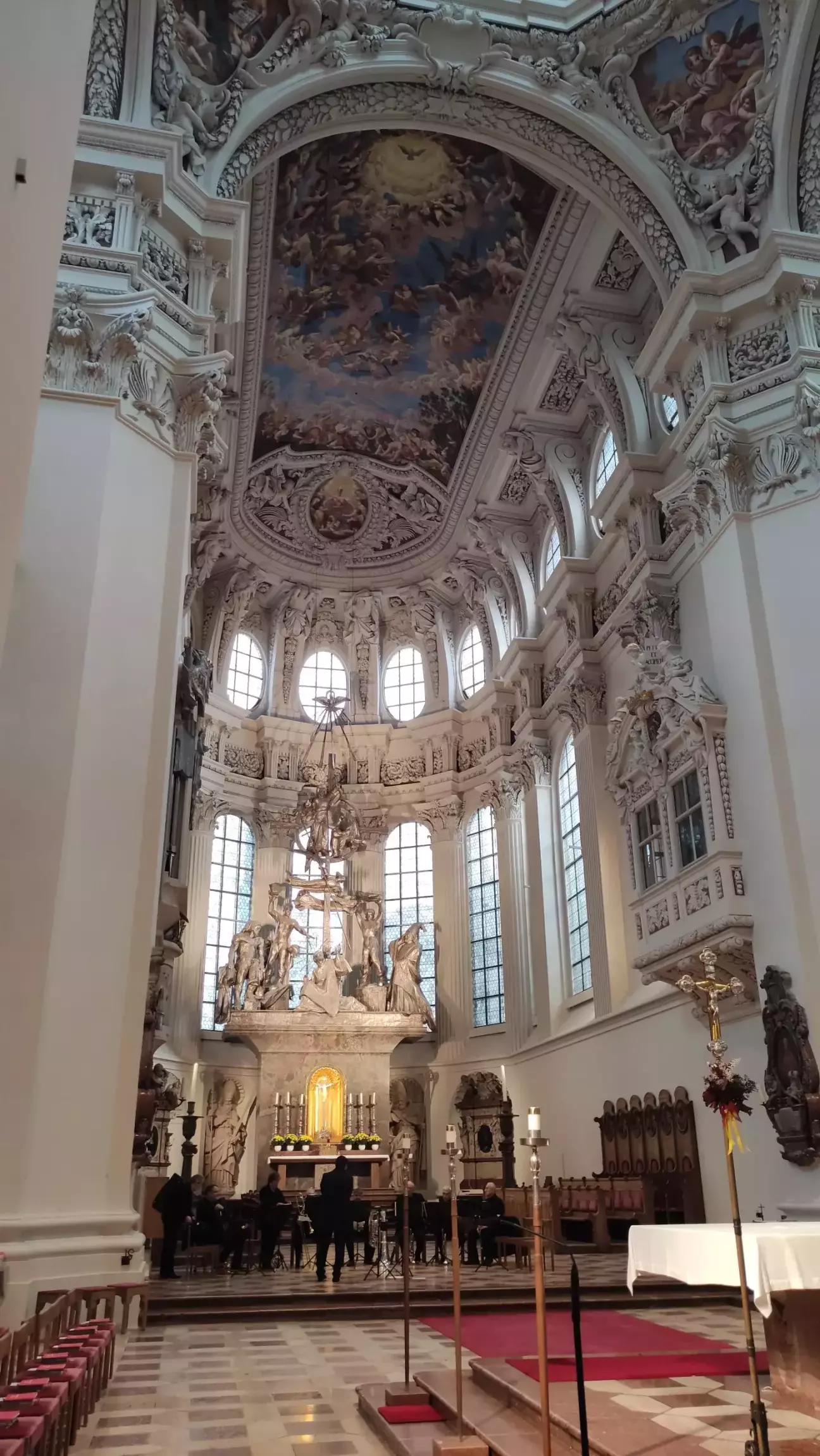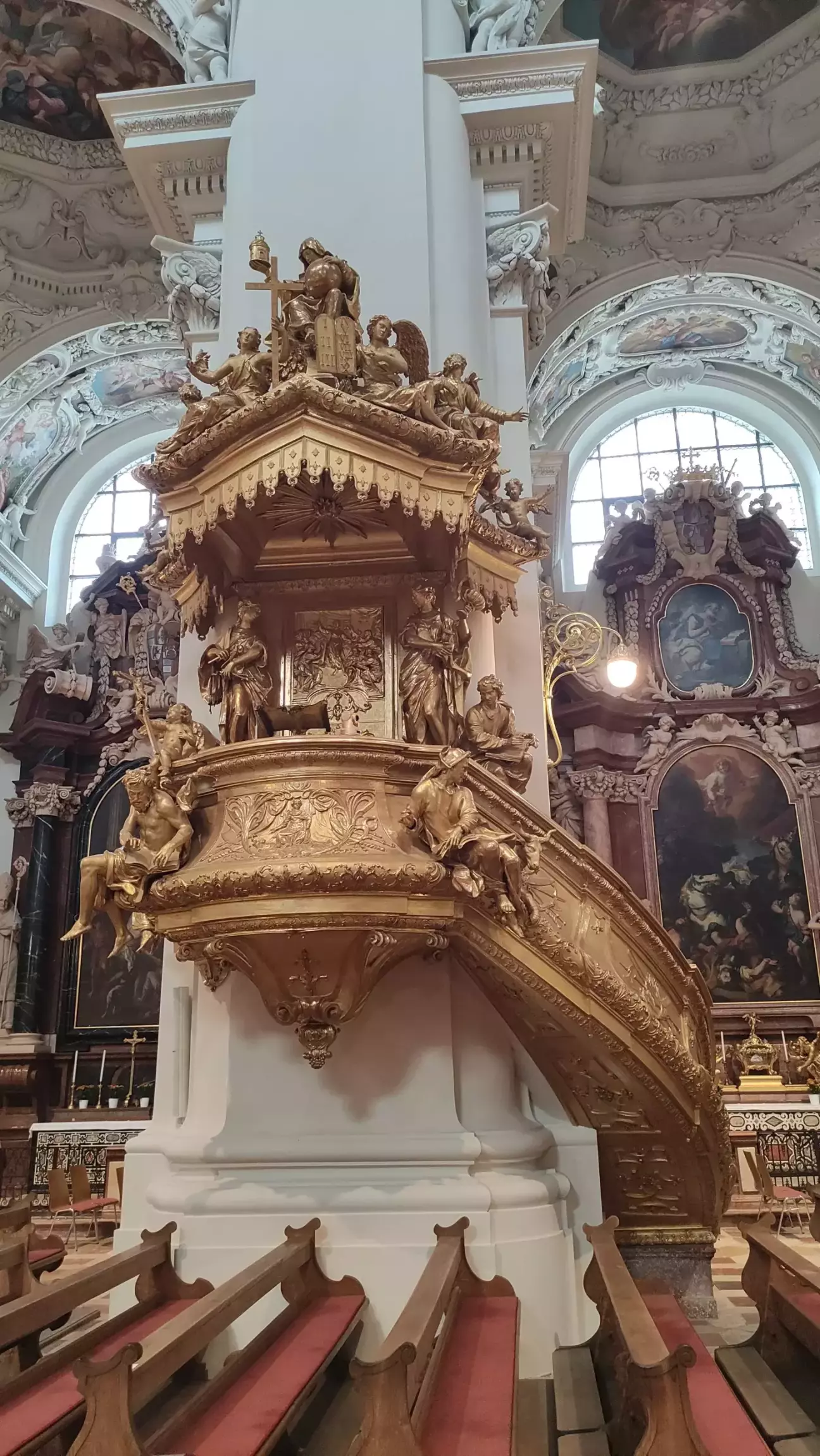 Дизайн інтер'єру створив Джованні Баттіста Карлоне, а фрески написали Карпофоро Тенкалла та Карло Антоніо Буссі. Бароковий фасад з двома вежами розташований на східній стороні соборної площі. Той факт, що дві стилістично різні, величезні споруди періодів пізньої готики та бароко так гармонійно поєднуються, як всередині, так і зовні, в збалансоване ціле, надає Пассауському собору особливе місце серед усіх соборів німецькомовного світу. Собор св. Степана – найбільший бароковий собор на північ від Альп. З 17974 трубами та 233 регістрами його орган є найбільшим кафедральним органом у світі та найбільшим органом за межами США.