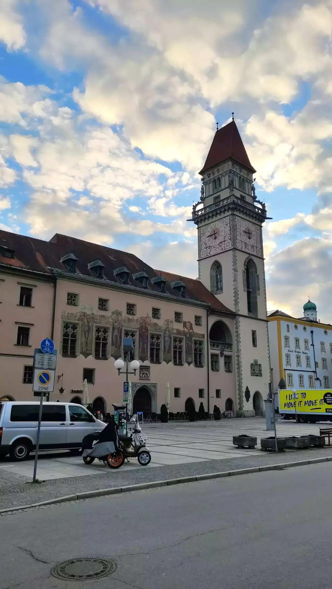 На березі Дунаю стоїть ратуша 14го ст. з 38-метровою вежею, яку було добудовано лише у 1890му р. На площі перед ратушею, у патриціанському будинку «Вільдер Манн», розташований Музей скла Пассау з експонатами всесвітньо відомого богемського скла. На схід від площі ратуші знаходиться головна митниця в неокласичному стилі, збудована між 1848 і 1851 рр. Фрідріхом фон Гертнером. Неподалік від ратуші знаходиться колишній єзуїтський костел св. Михаїла з прилеглим комплексом колишнього єзуїтського колегіуму, а ще трохи далі на околиці старого міста знаходиться колишній бенедиктинський монастир Нідернбурга.