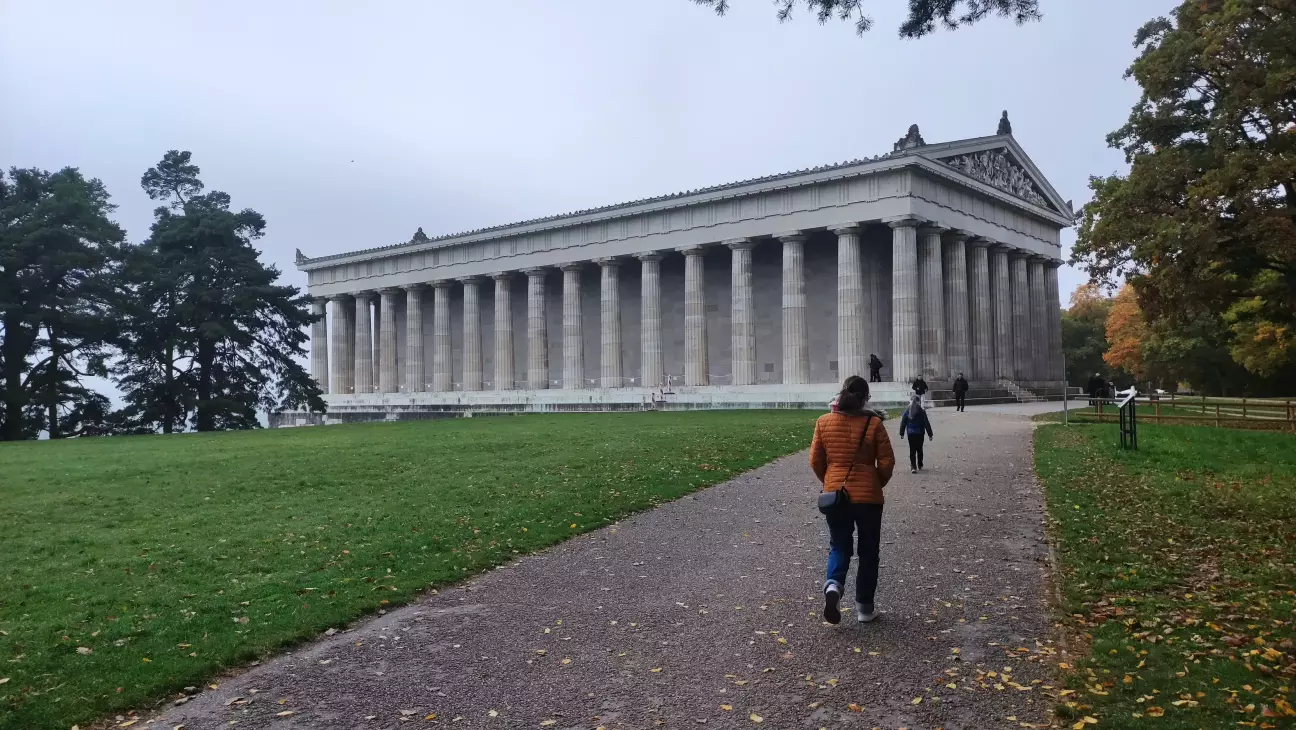 Останній день нашої осінньої подорожі ми почали з культового для німців місця - Вальгалли. Це меморіал, храм слави історичних особистостей, які зробили видатний внесок у німецьку культуру. Був збудований у 1842мк р. за наказом короля Людвига 1го у неокласичному стилі (на кшалт давньогрецьких храмів) на березі Дунаю, поблизу міста Регенсбург. Будівля в стилі неокласицизму, що являє собою копію давньогрецького храму, побудована архітектором Лео фон Кленце під впливом архітектури афінського Парфенона. Розміри Валгалли майже збігаються з розмірами Парфенона, довжина становить 48,5 м, ширина 14 м і висота 15,5 м. За задумом Людвіга його Валгалла мала стати пам'ятником найвидатнішим представникам Німеччини за 1800 років, починаючи від битви в Тевтобурзькому лісі в 9му р. н.е. Якщо у скандинавській міфічній Валгаллі бенкетували тільки воїни, героїчно загиблі на полі битви, то баварська Валгалла Людвіга була призначена не тільки для воїнів, але також і для науковців, письменників та інших видатних особистостей. Напередодні утворення Німецької імперії в 1871му р., «німецький» був синонімом «германського», тому в залу включили представників готів, лангобардів, англосаксів, франків і швейцарців. До часу коронації Людвіга в 1825му р. створили 60 бюстів. Сьогодні серед умов для тих, чиї бюсти поміщають в Валгаллу - особа мала померти більше двадцяти років тому. З часу відкриття додано тільки 32 бюсти і одну меморіальну дошку. Отже, нині у Валгаллі представлені 193 пам'ятних знаки, з яких 12 присвячені жінкам. Серед останніх доповнень: Альберт Ейнштейн (1990), Кароліна Герхардінгер (1998), Конрад Аденауер (1999), Йоганн Брамс (2000), Софі Шолль (2003), Карл Фрідріх Гаус (2007), Едіт Штайн (2009), Генріх Гейне (2010), Кете Колльвітц (2019), Макс Планк (2022). Читаю донечці вечорами казки Братів Грімм і там як раз є всі-всі особи зображені на меморіальних дошках. Серед тамтешніх німців, лишивших слід в історії Російської імперії (і відповідно України як її частини в ті часи) я знайшов таких персон: Михайло Богданович Барклай де Толлі (при народженні Міхаель Андреас Барклай-де-Толлі) - російський фельдмаршал; Іван Іванович Дибич-Забалканський (до рос. служби Ганс Карл Фрідріх Антін фон Дибич-унд-Нартен) - російський фельдмаршал; Катерина 2га Велика (при народженні Софі Августа Фредеріка фон Анхальт-Цербст-Дорнбург) - російська імператриця. Якщо вояки були як вояки, то та *лядь українській історіографії сприймається вкрай негативно, так само як Петро 1й; як писав Тарас Шевченко в поемі Сон: «Це той первий, що розпинав нашу Україну, а вторая доконала Вдову-сиротину». Ех, хочеться вірити, що в Україні буде колись побудовано пантеон своїх героїв...