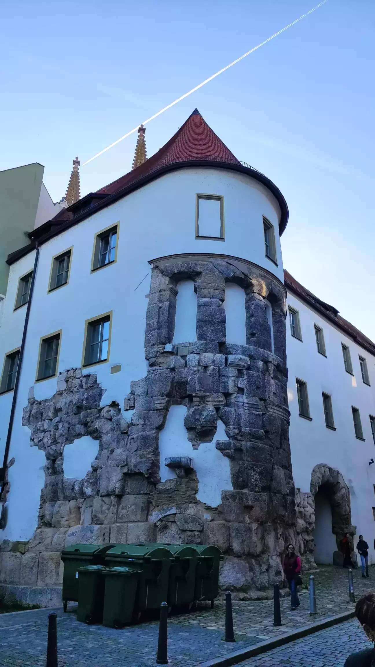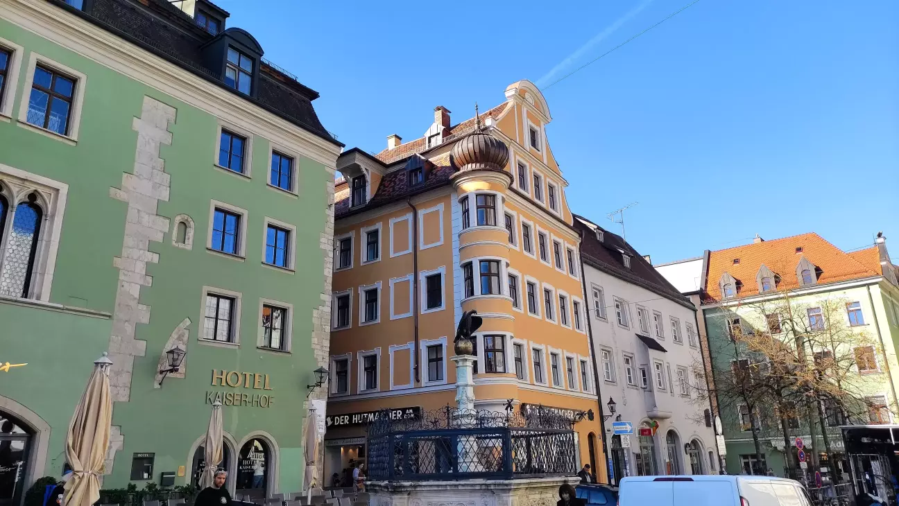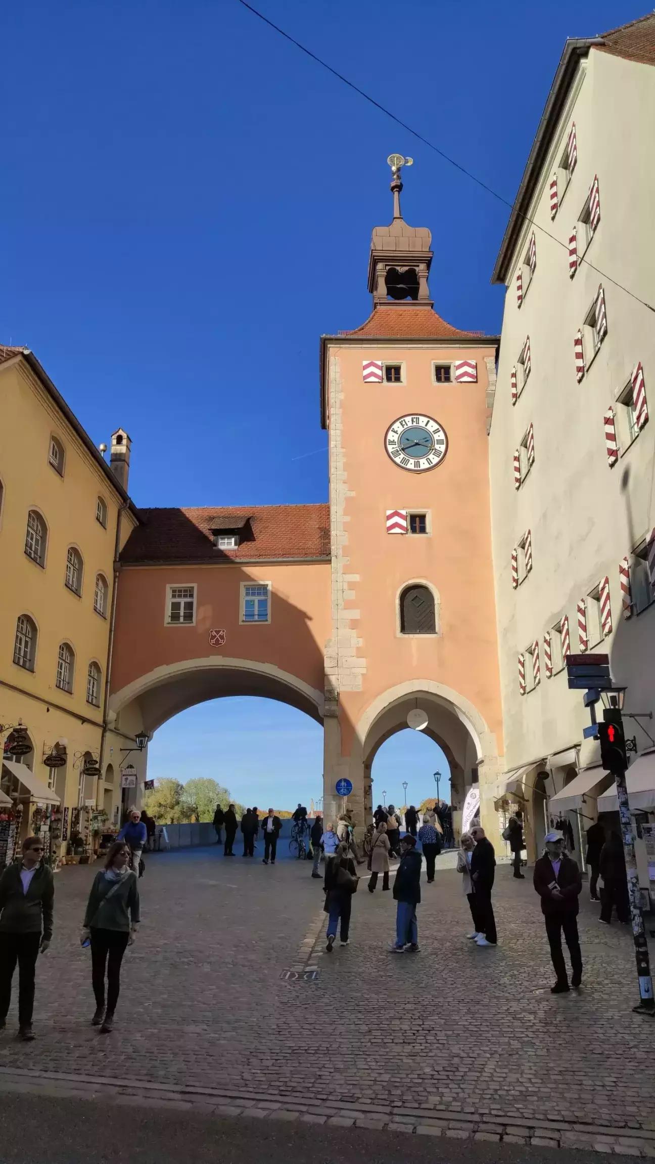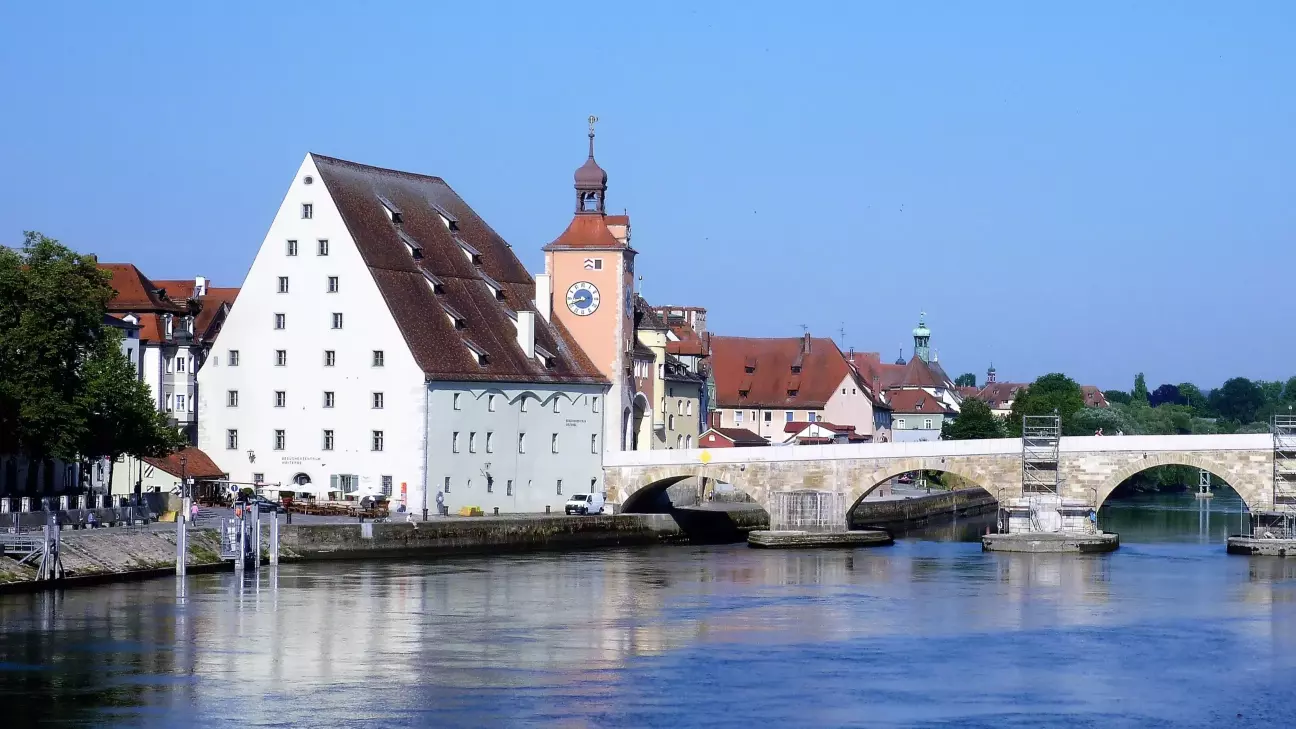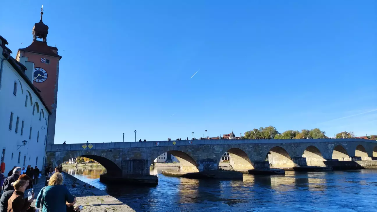 Після екскурсії цим культовим місцем я повіз сімейство до Регенсбурга, з яким я вперше познайомився в грудні 2015. З населенням близько 152 т. мешканців Регенсбург є четвертим найбільшим містом Баварії після Мюнхена, Нюрнберга та Аугсбурга. Стара частина міста, що була закладена ще в часи Середньовіччя, визнана об'єктом світової спадщини ЮНЕСКО та є засвідченням ролі Регенсбурга як культурного центру середньовічної південної Німеччини. У старому місті Регенсбурга, що виходить на Дунай, височіє Кам'яний міст, який разом з його вежею над брамою був збудований між 1135 і 1146 рр. Лише після будівництва середньовічних міських укріплень на початку 14го ст. вежа мосту стала частиною оборонних споруд міста.