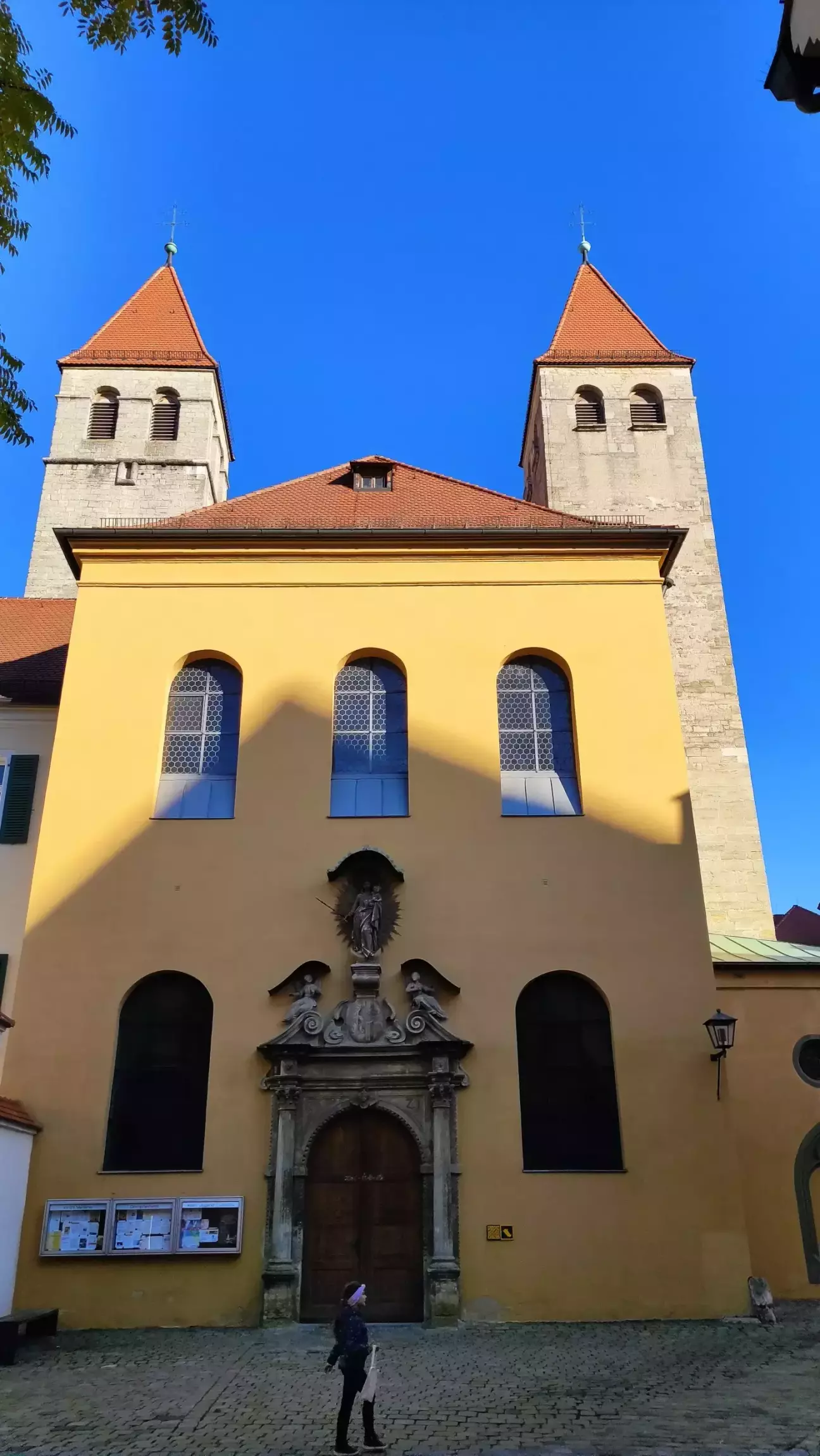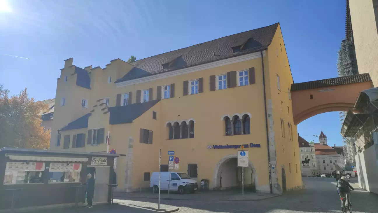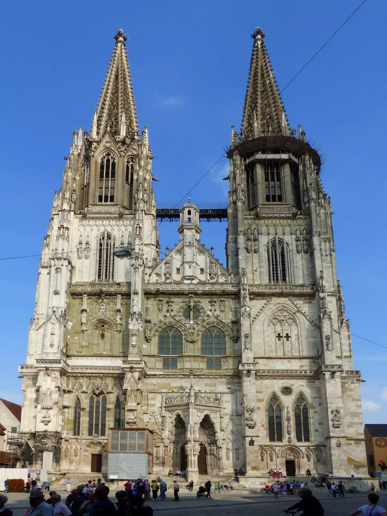 Регенсбурзький собор - найважливіша церква міста та кафедральний собор Регенсбурзької єпархії. Поряд із Кельнським собором, це один із найважливіших готичних соборів Німеччини. Він був побудований на місці романського собору, від якого досі збереглася так звана Осляча вежа. Будівництво готичного собору розпочалося в 1275му р. і лише з 1450го р. в ній почали проводити богослужіння. Дві вежі та їх шпилі були завершені між 1859 і 1869 рр.