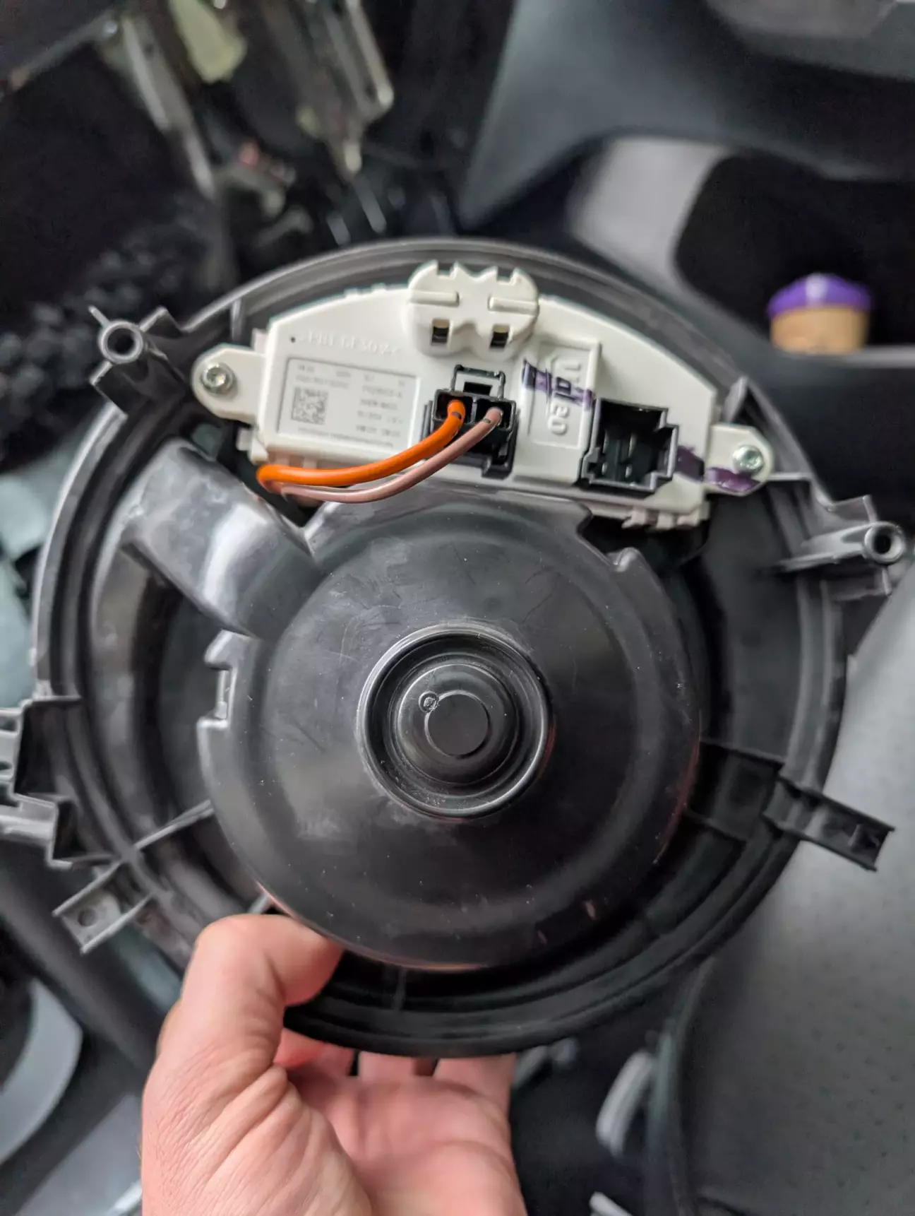 Паралельно переписувався з хлопцями з DRIVER.TOP (окрема подяка @aladys85 та @Olegator ). З’ясували, що фішка моторчика має 3 дроти: клема 30, маса та LIN-шина. @Olegator підказав, що шина може коротити на масу. Оскільки ця лінія об’єднує блок клімату, датчик забруднення повітря (під жабо) та датчик тиску компресора, я почав почергово їх відключати.