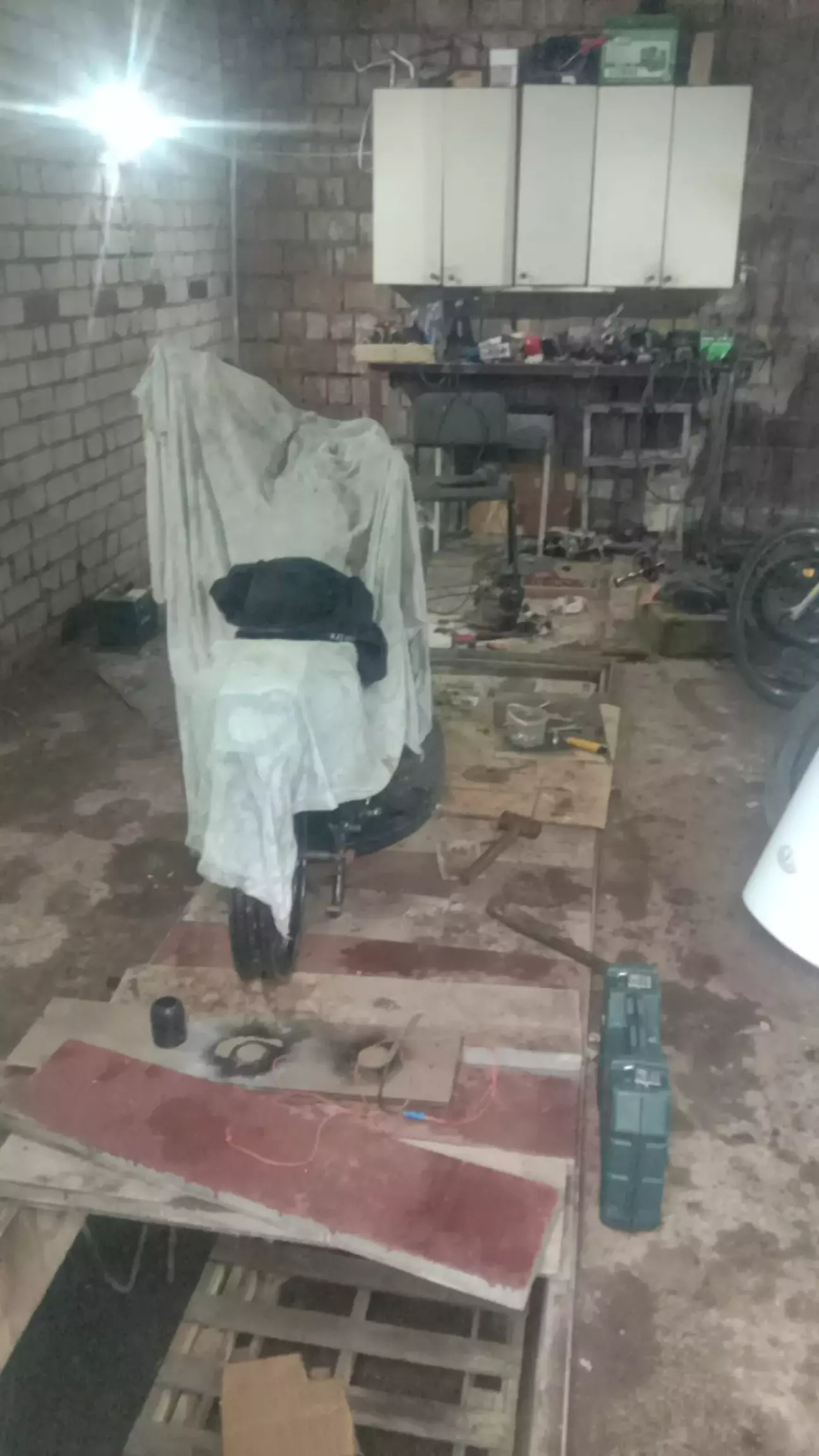 А вот почему делаю на улице,на пол гаража раскидан мой Днепр,дочкины велосипеды и самокаты!